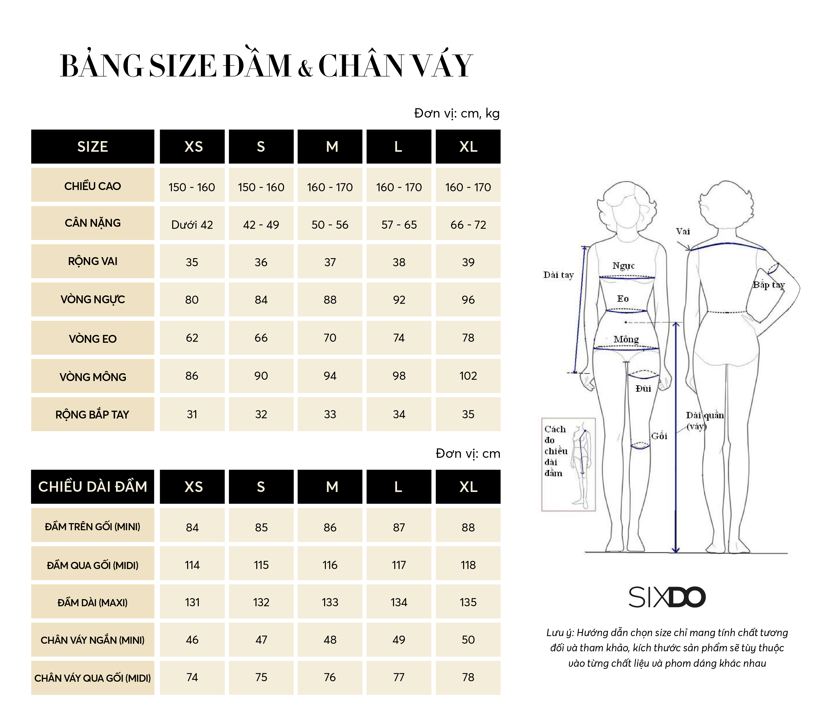 - Bảng size trên là bảng size chung mang tính chất tham khảo, tùy thuộc vào số đo cơ thể, form sản phẩm và chất liệu vải khác nhau sẽ có sự chênh lệch nhất định từ 1-2cm hoặc hơn.