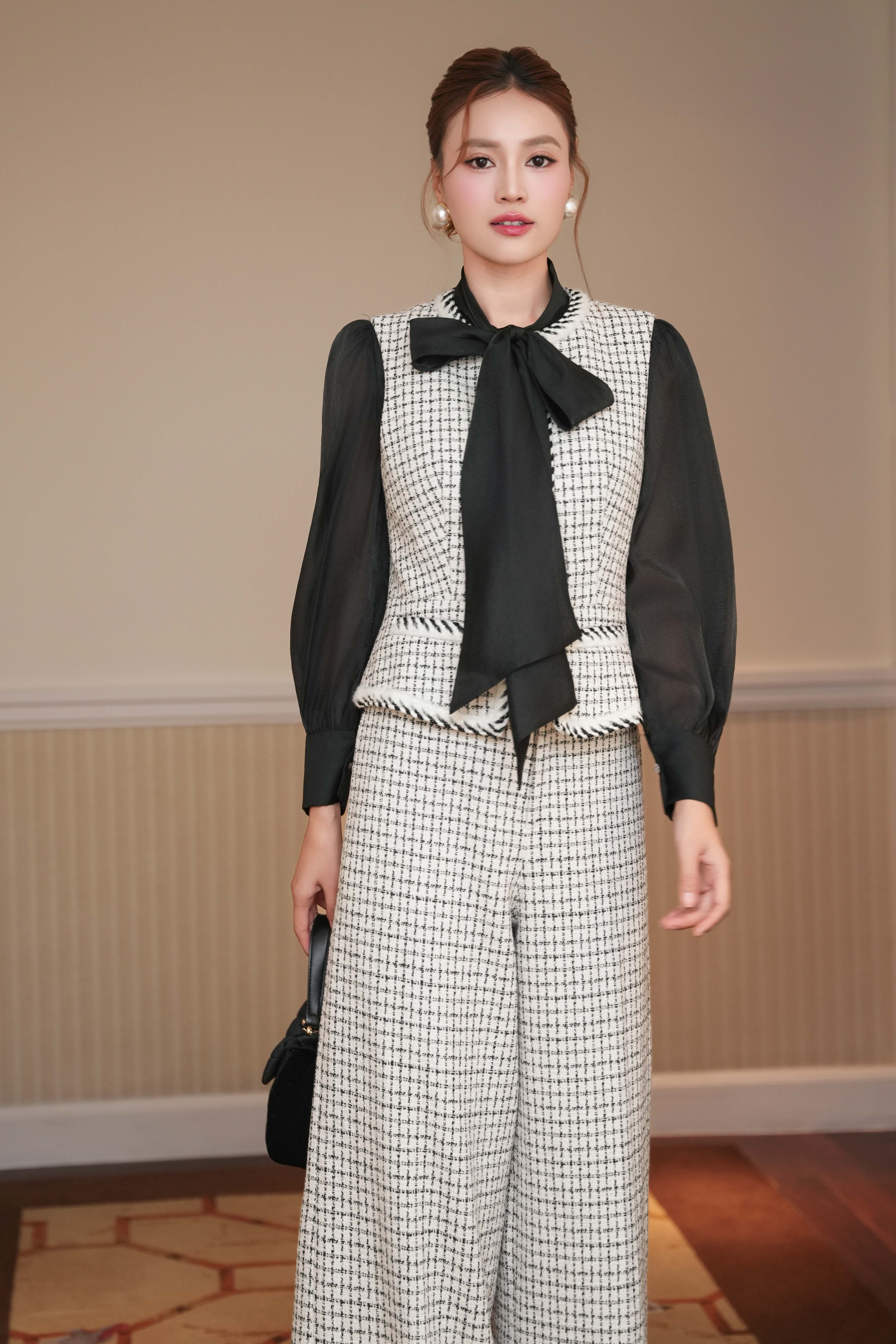 Black & White Check Tweed Loose Pants