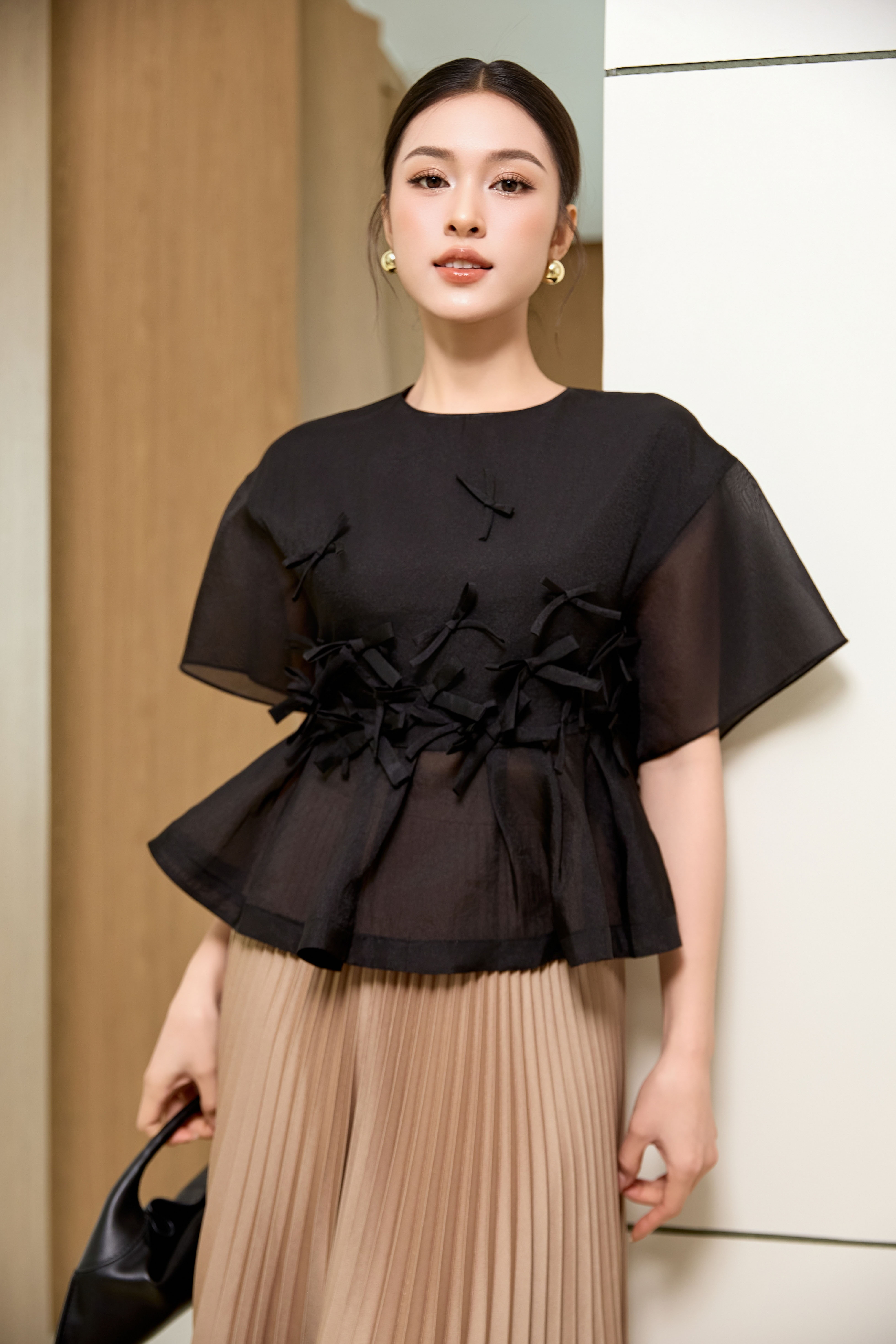 Black Bowtie Organza Blouse