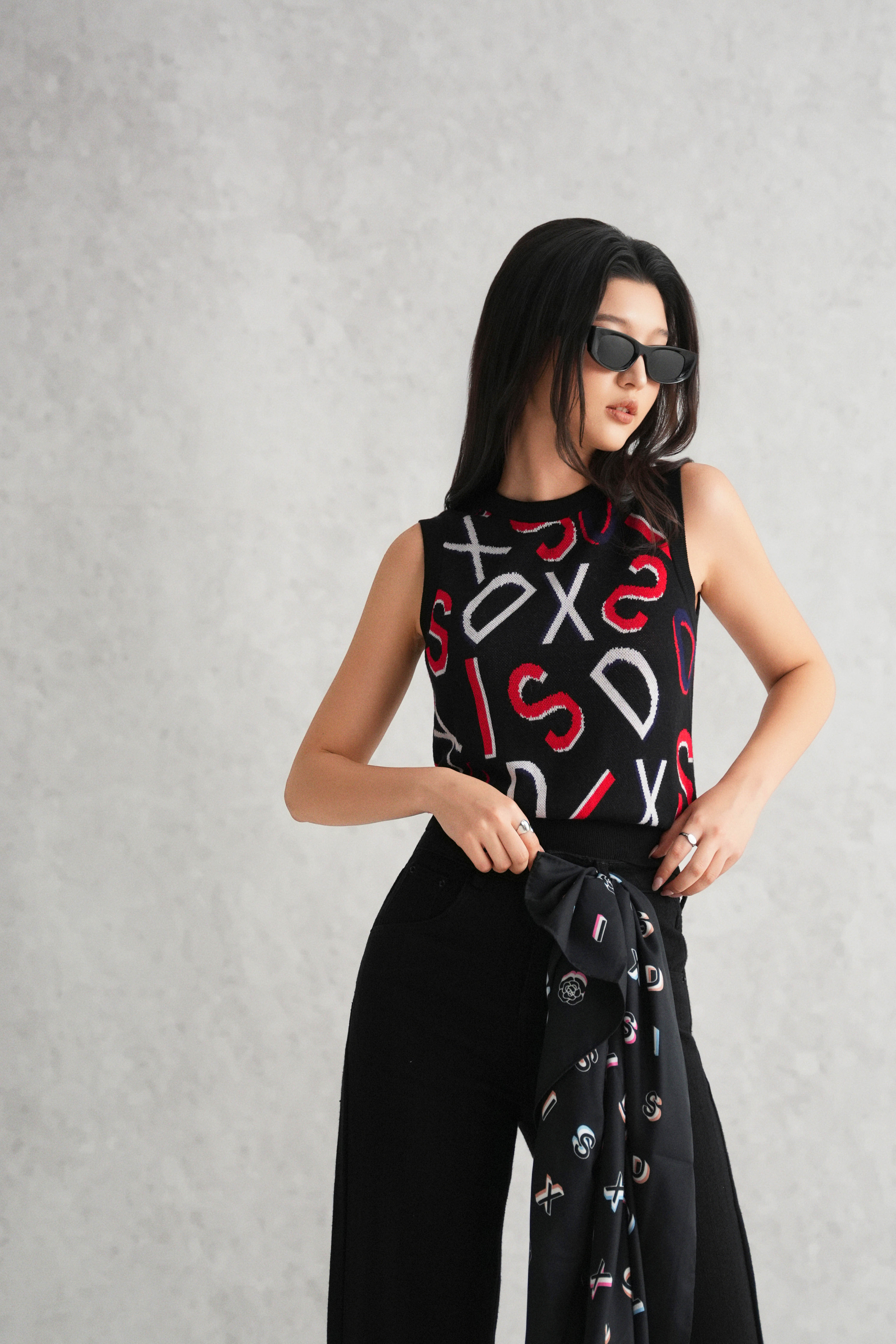 Black Letter Jacquard Knit Blouse