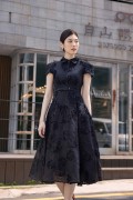 Black Organza Flared Dress