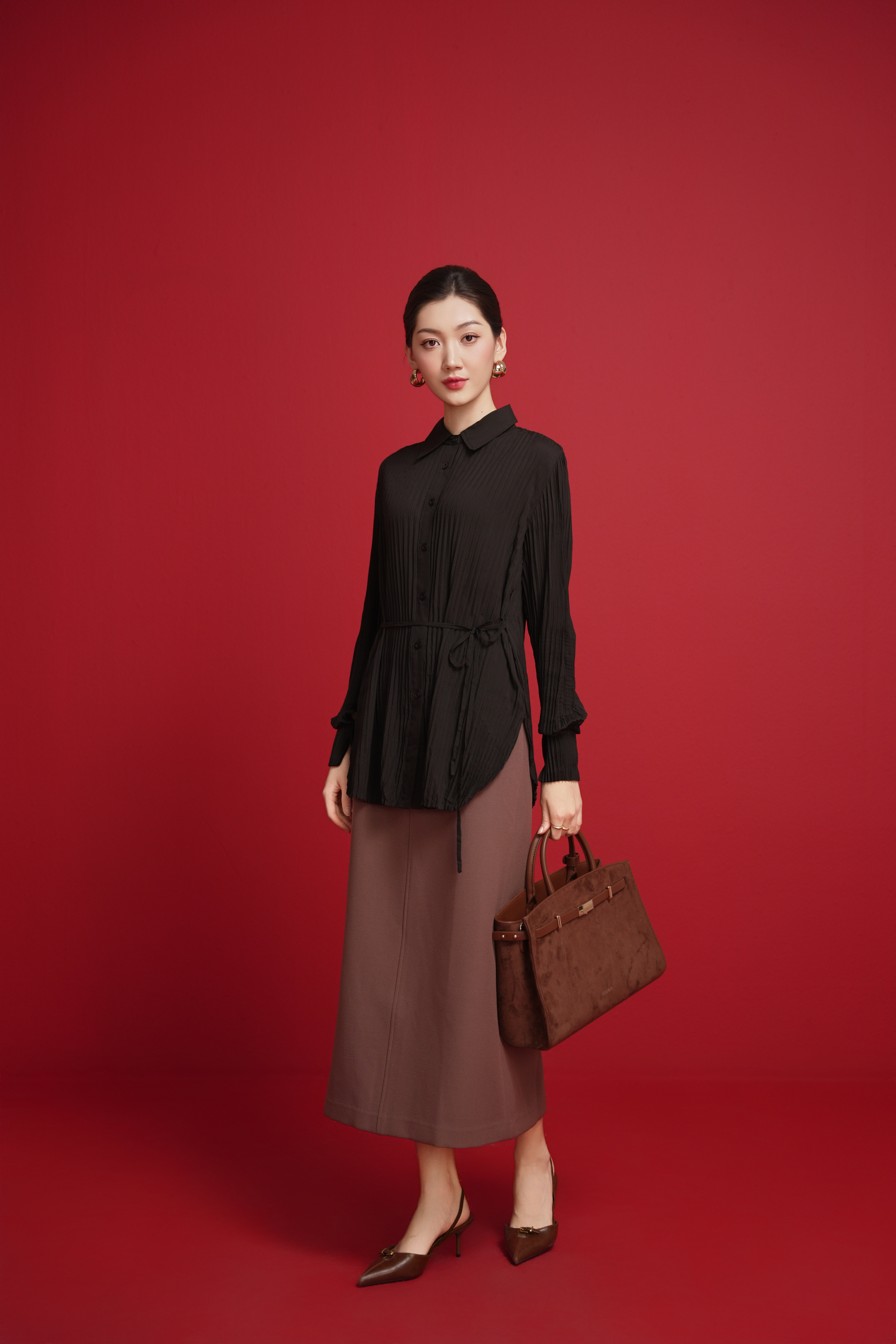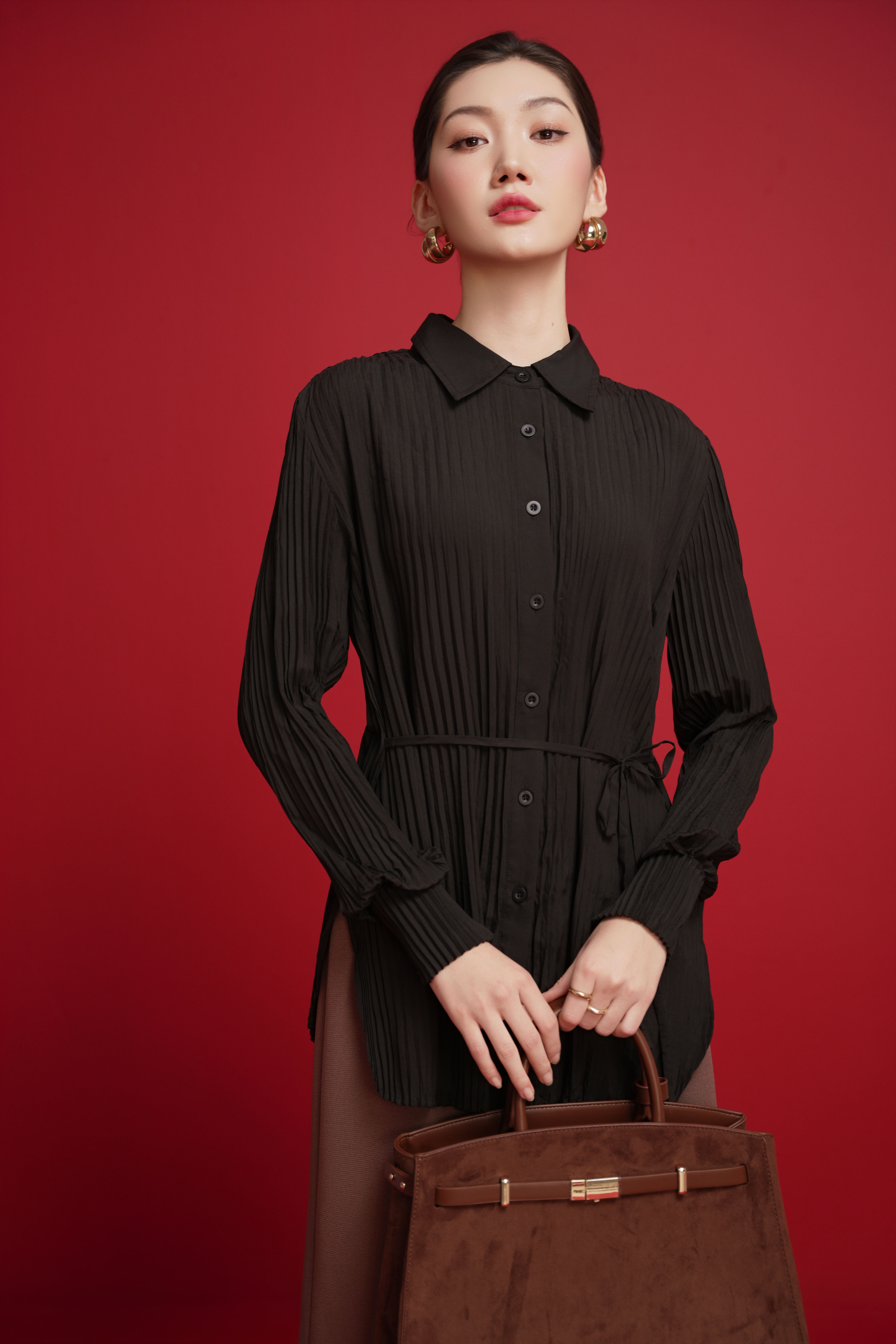 Black Pleated Woven Shirt