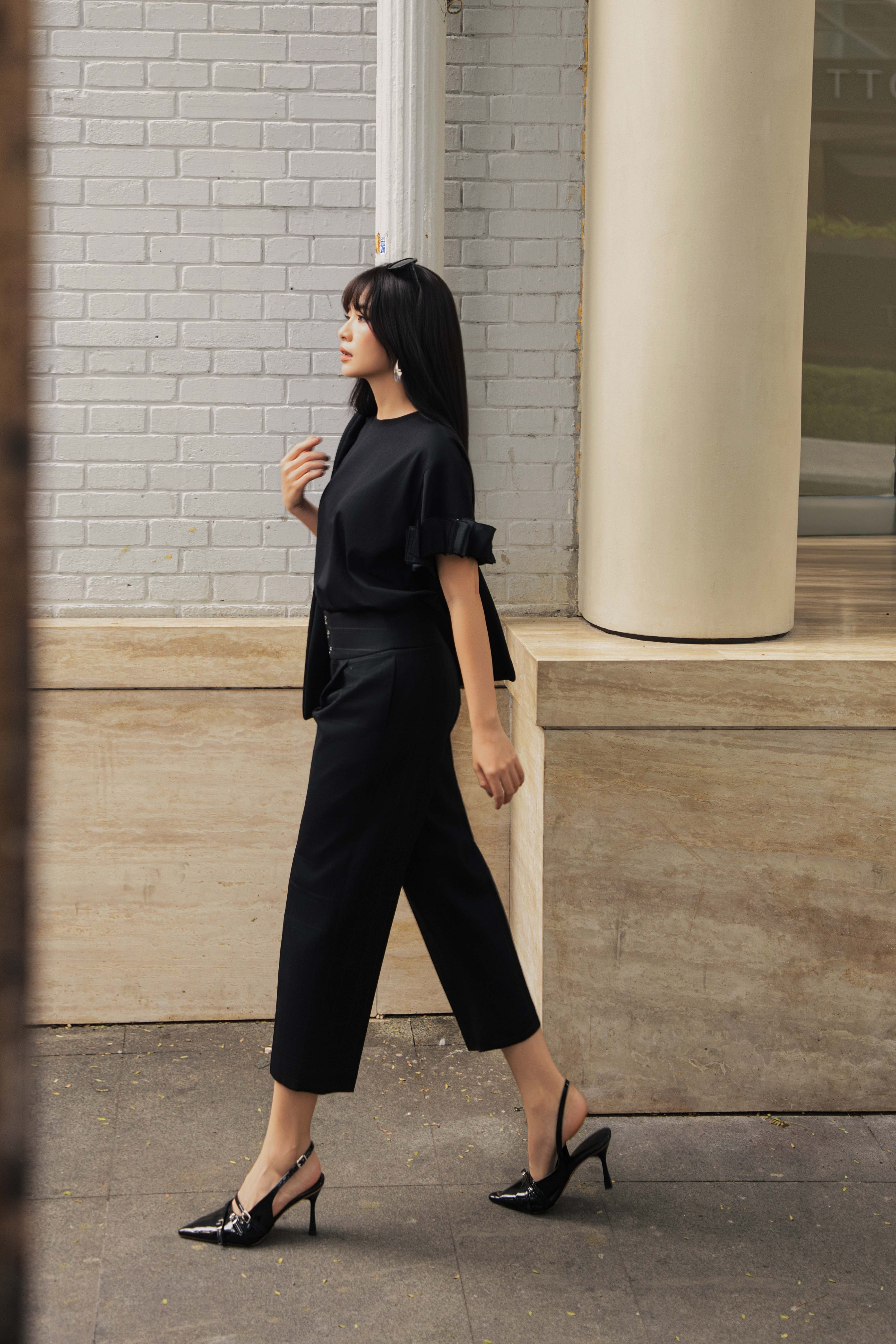 Black Ruffle Sleeves Cotton Tshirt