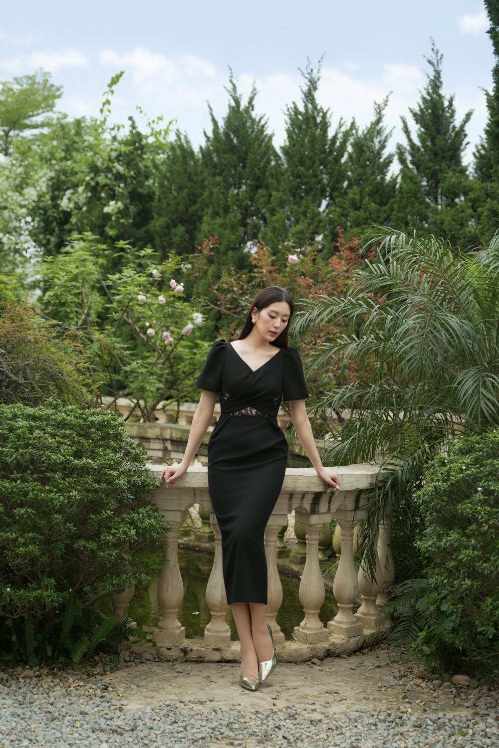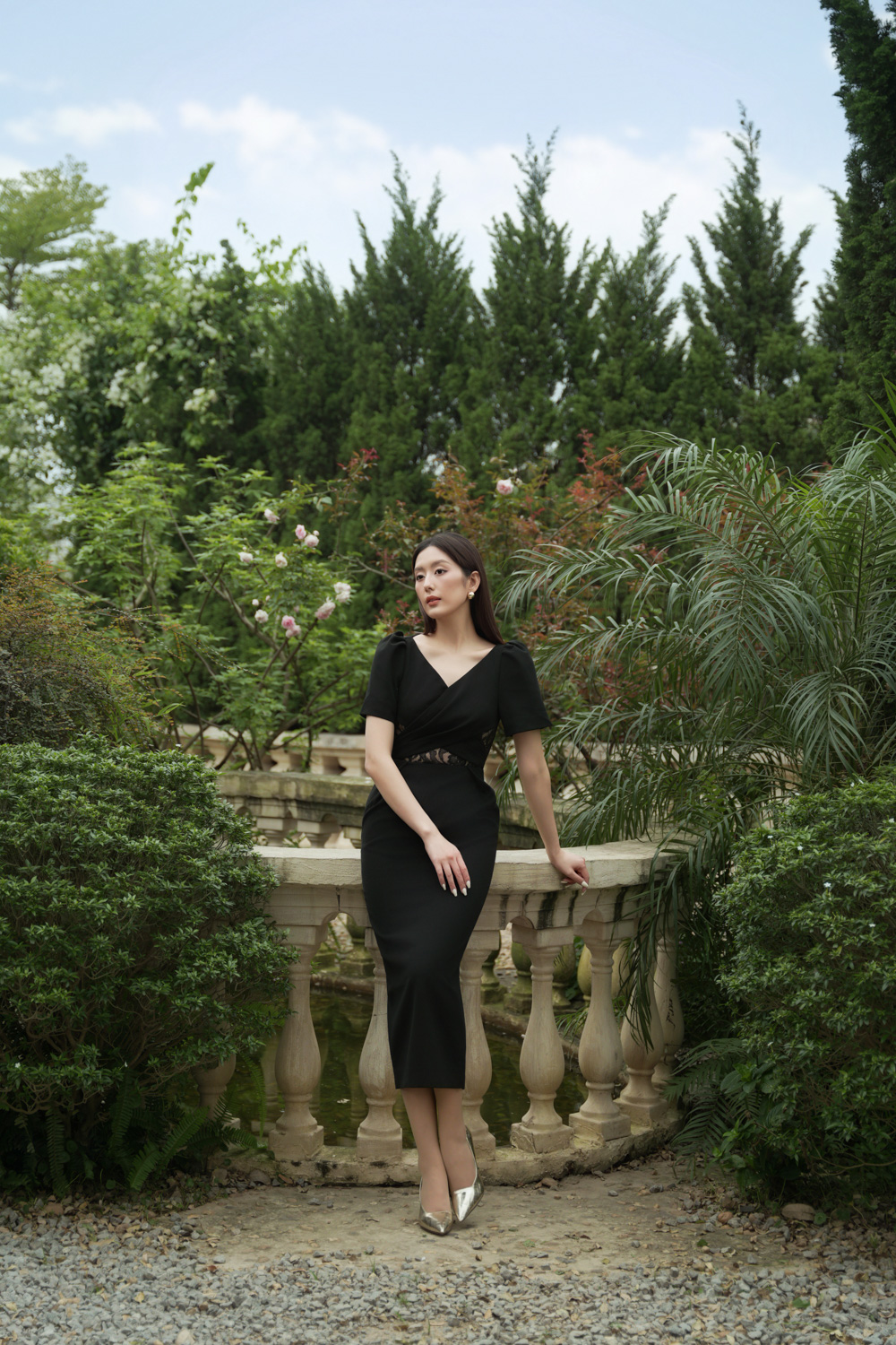 Black Woven Pencil Dress