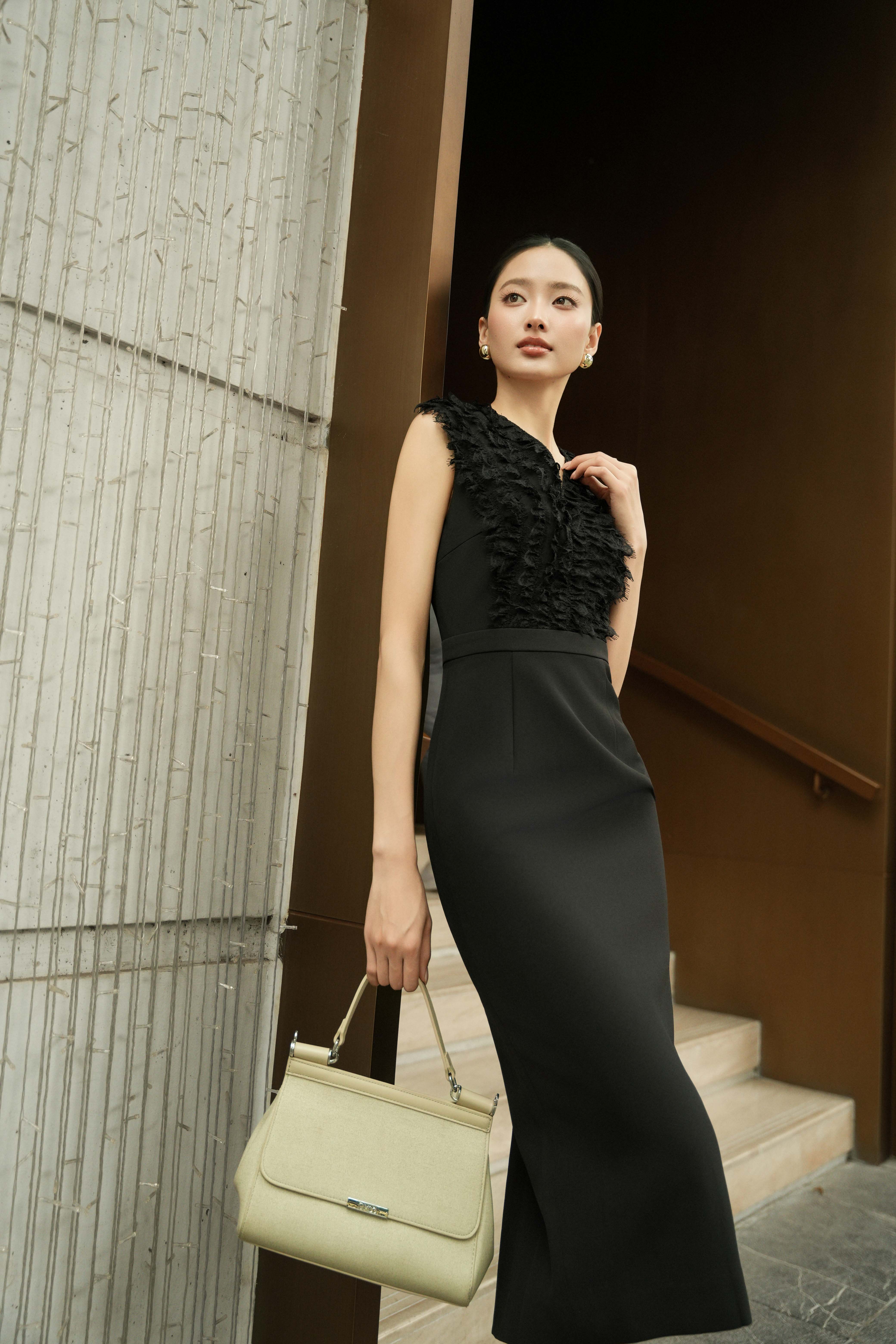 Black Woven Pencil Dress