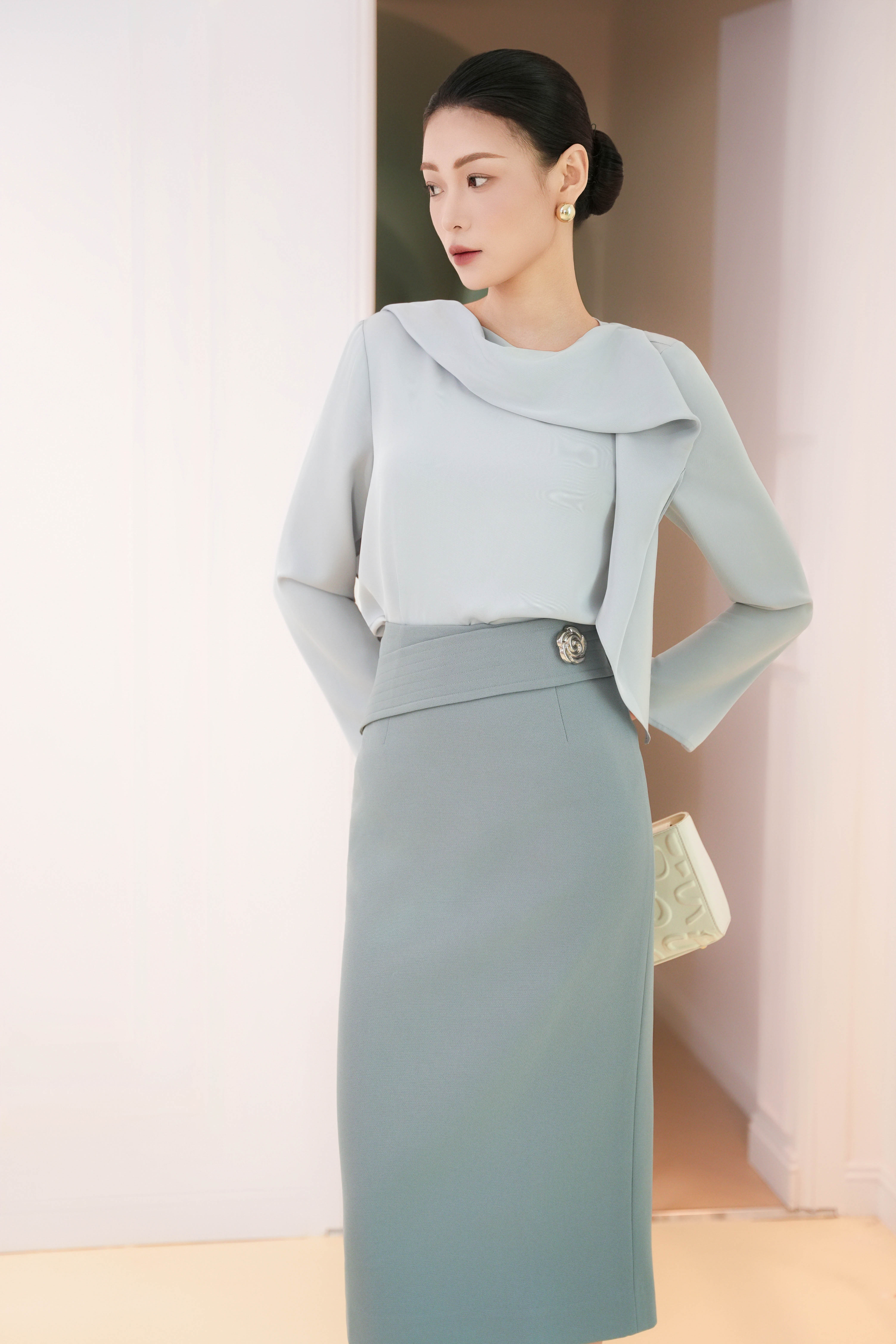 Blue-grey Woven Pencil Skirt