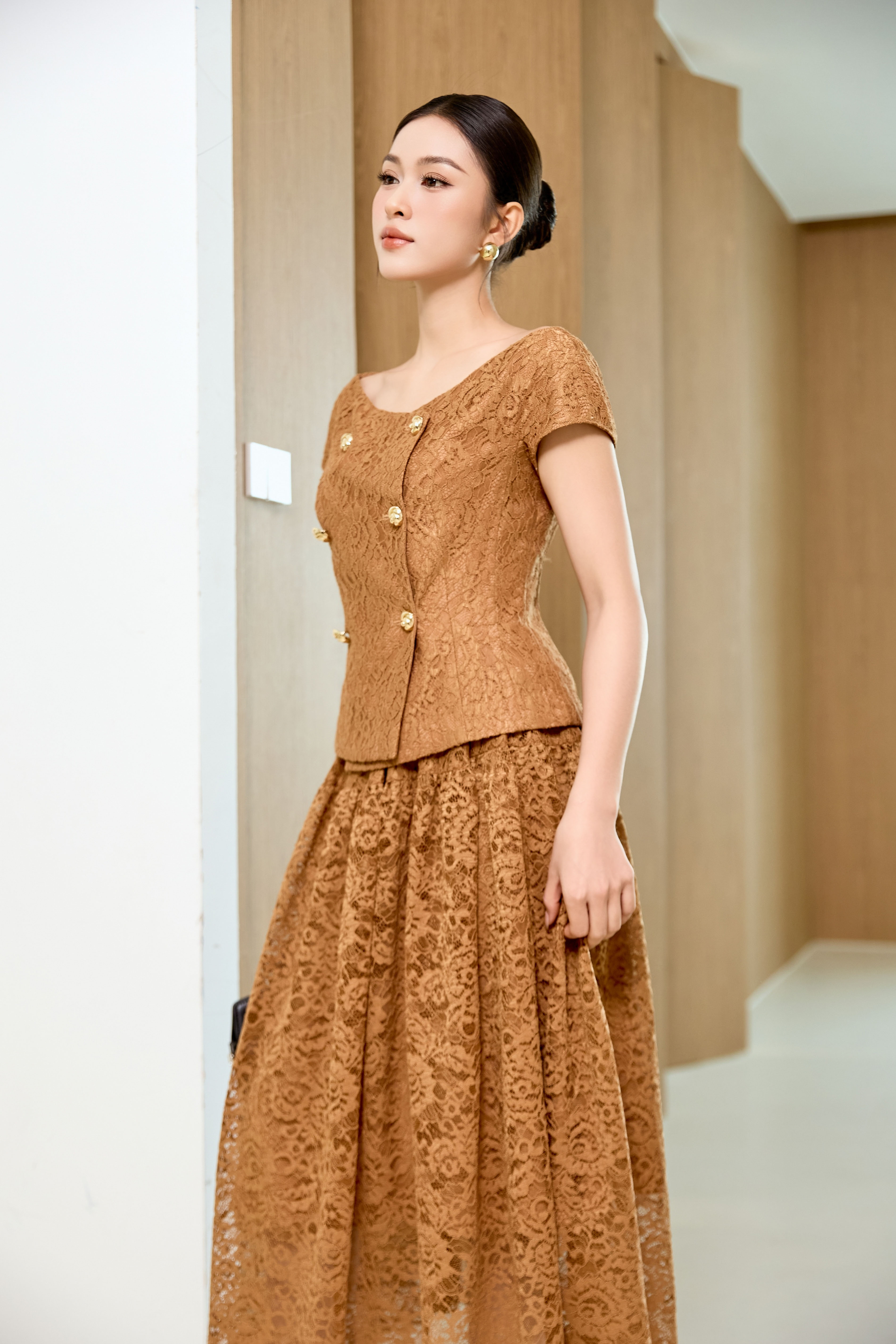 Brown Lace Flared Skirt