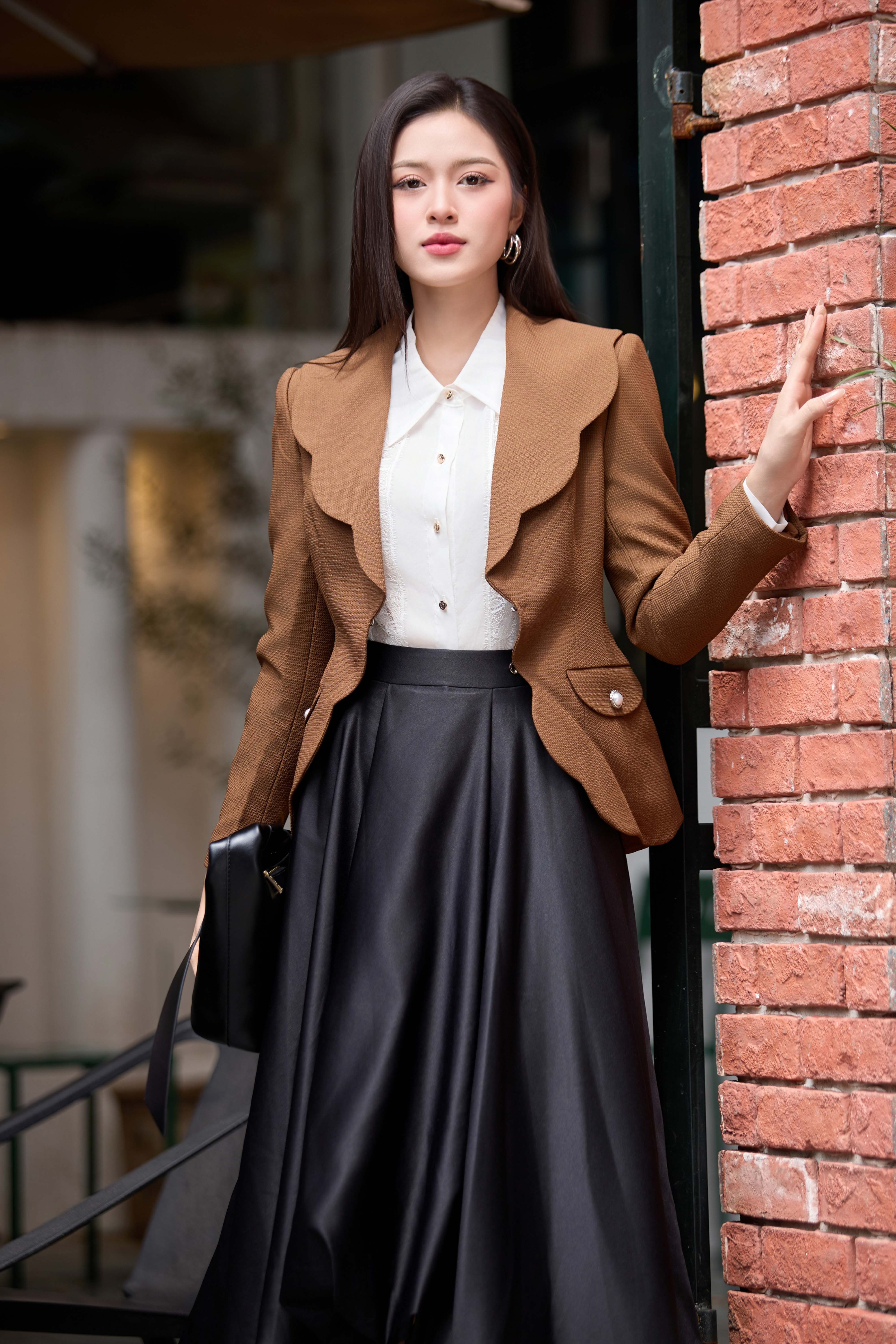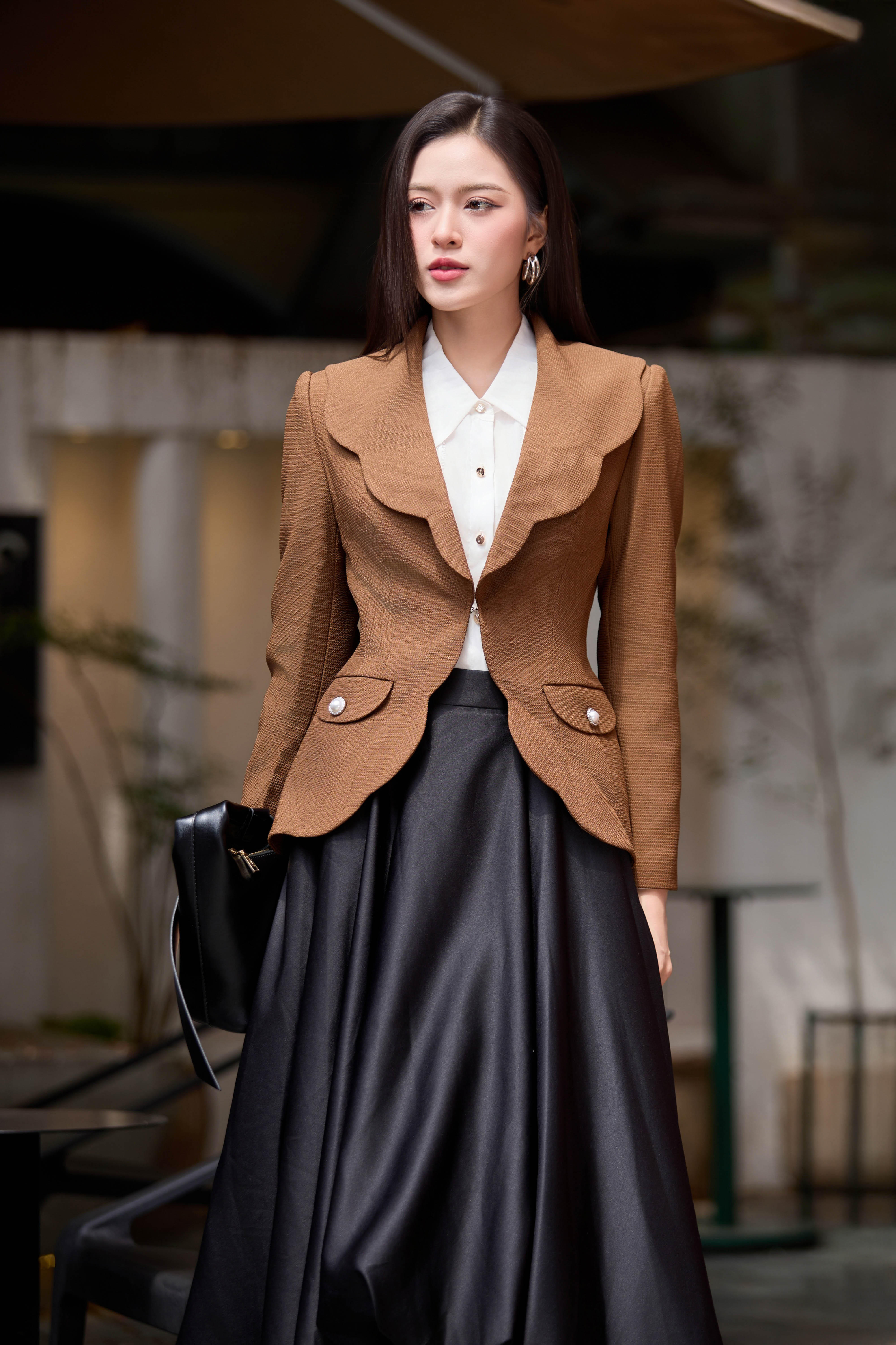 Brown Scalloped Neckline Raw Vest (Áo vest)