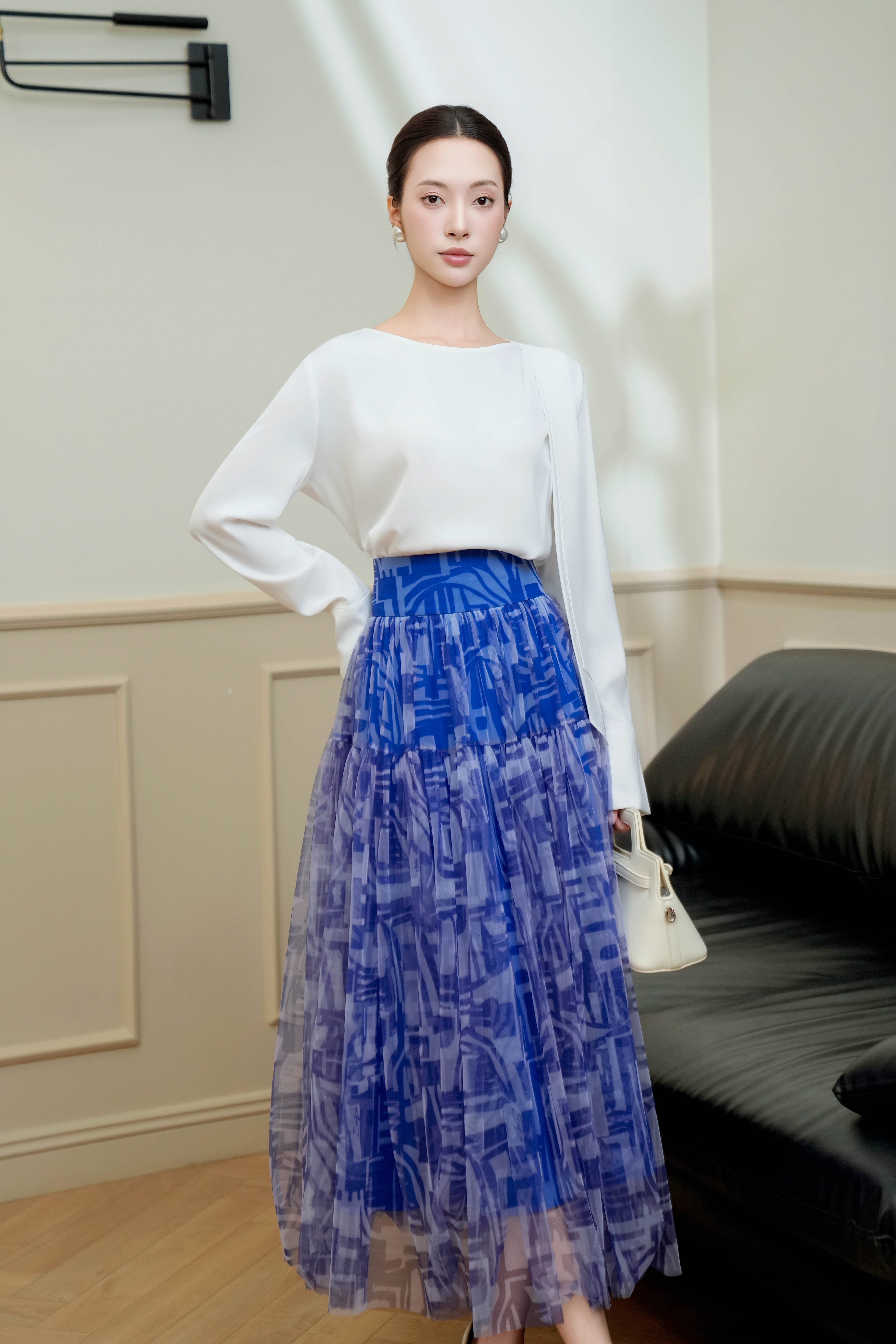 Cobalt Mesh Flared Skirt