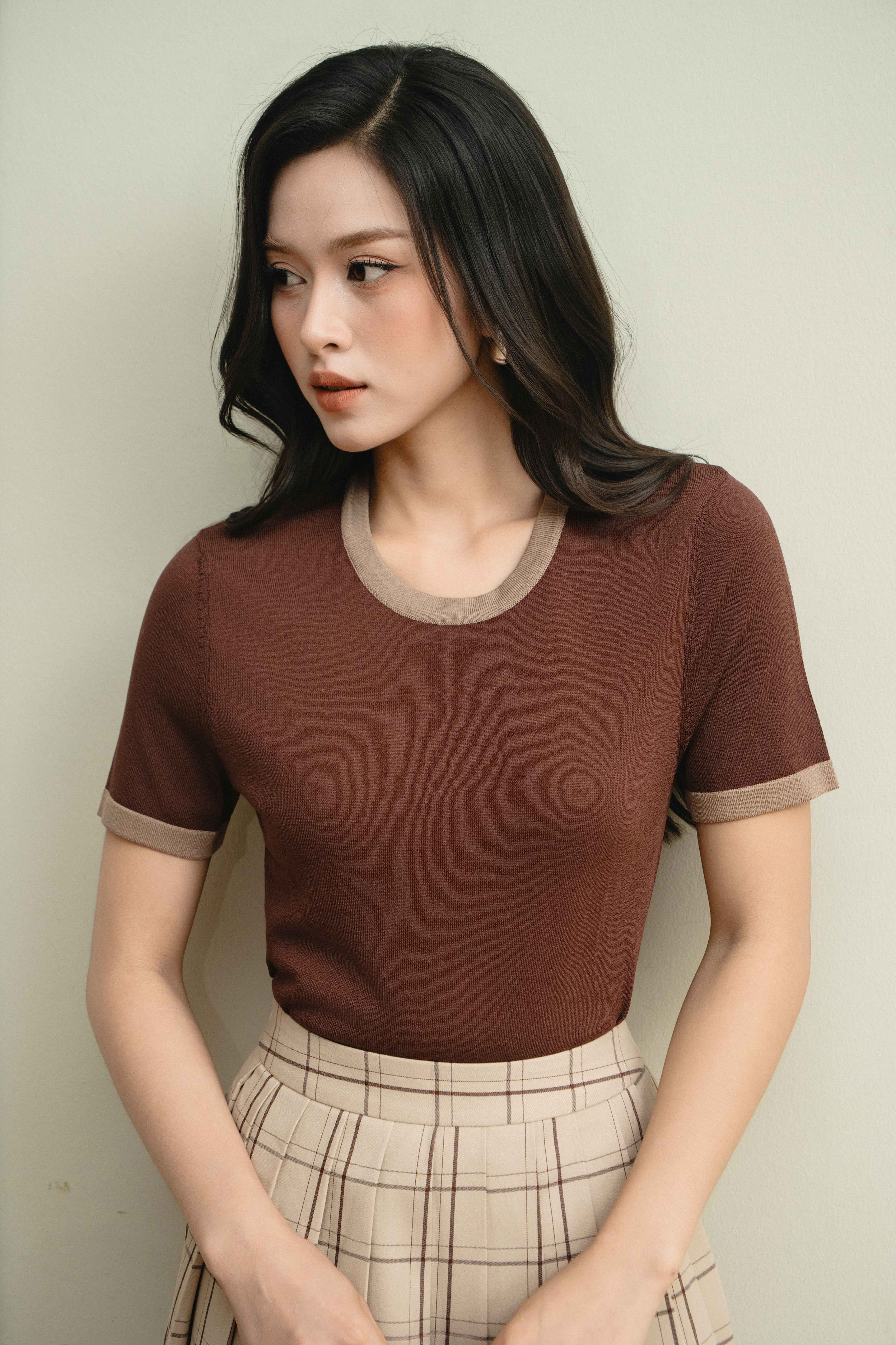 Contrast-trim Knit Blouse