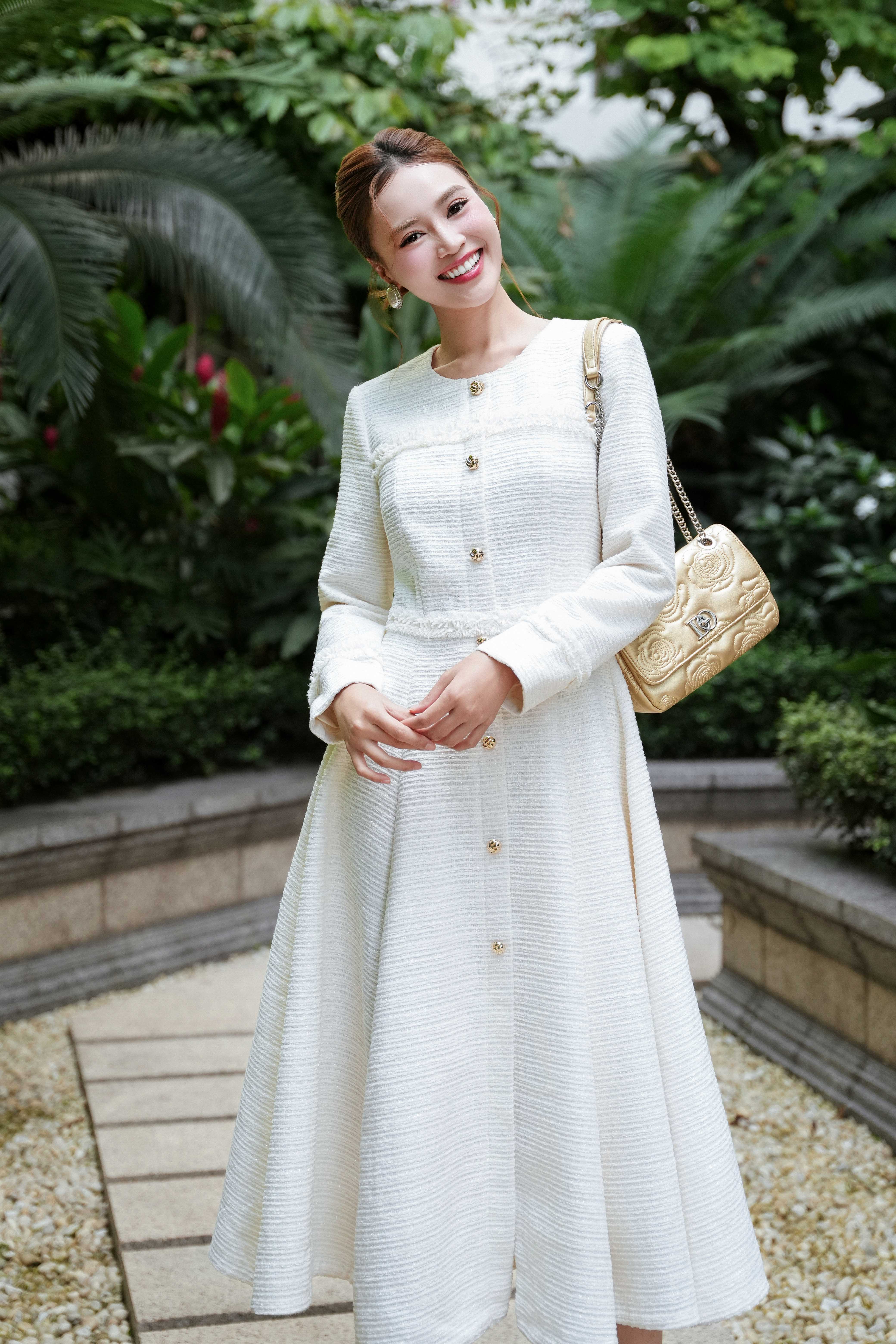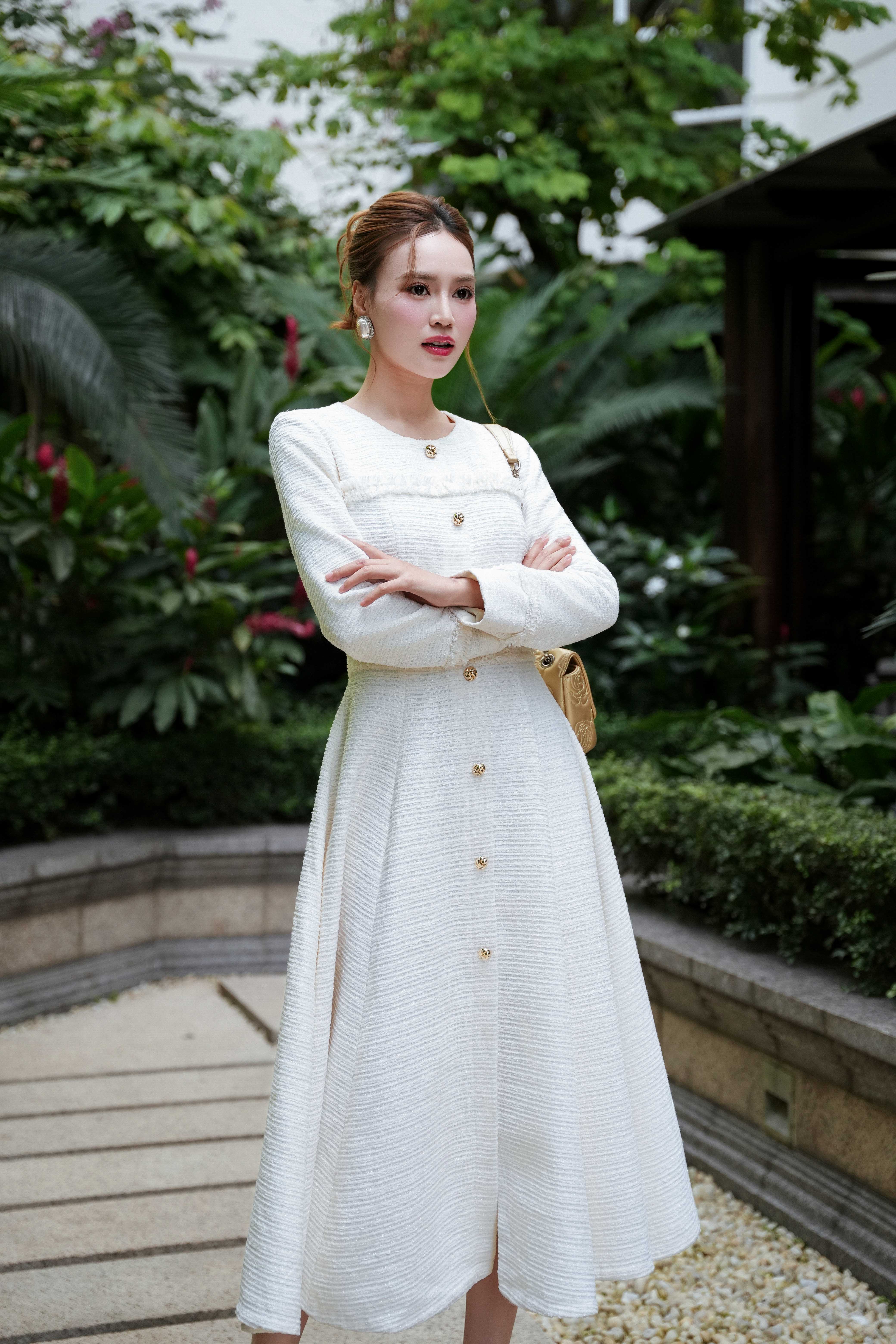 Cream Tweed Flared Dress