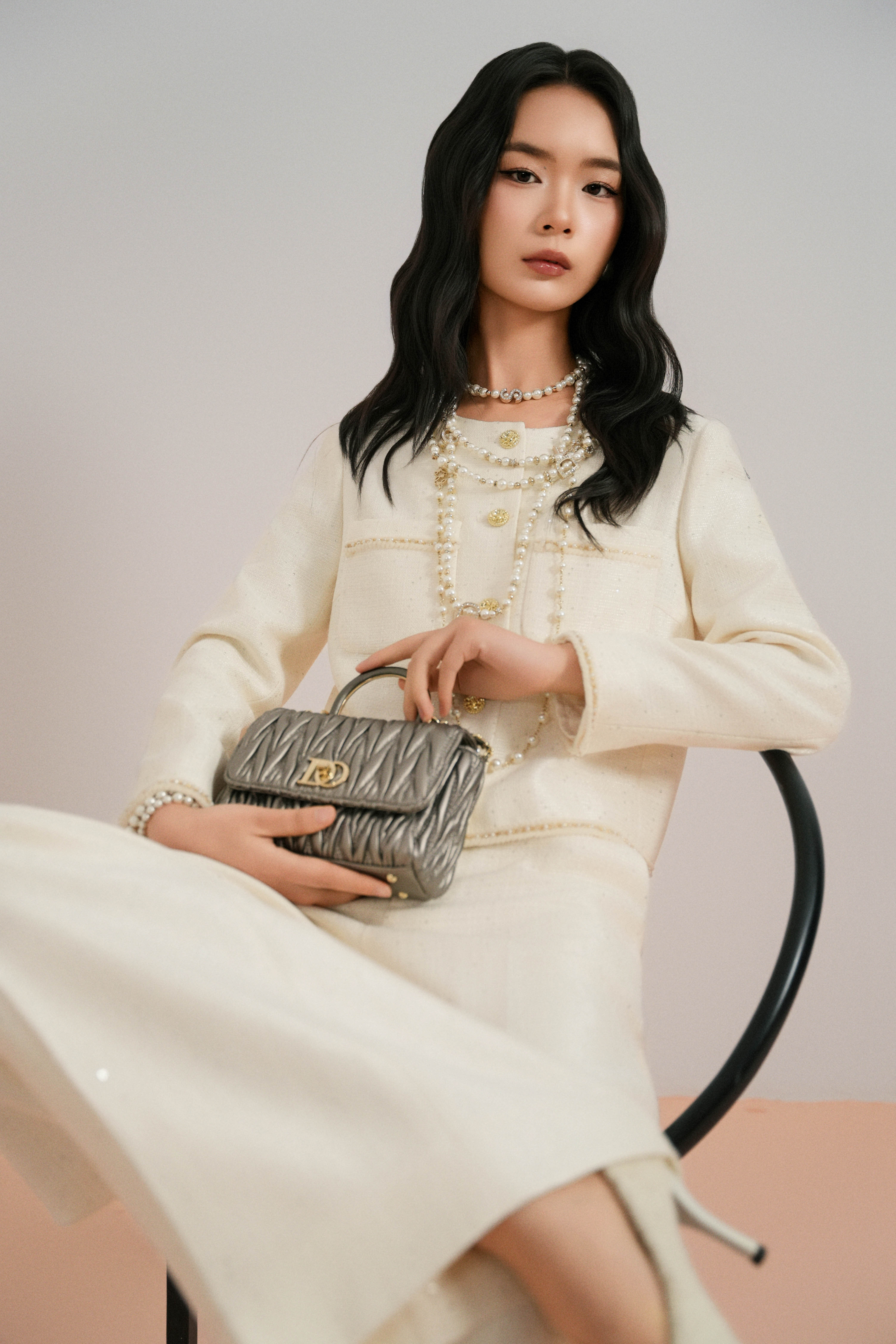 Cream Tweed Loose Pants