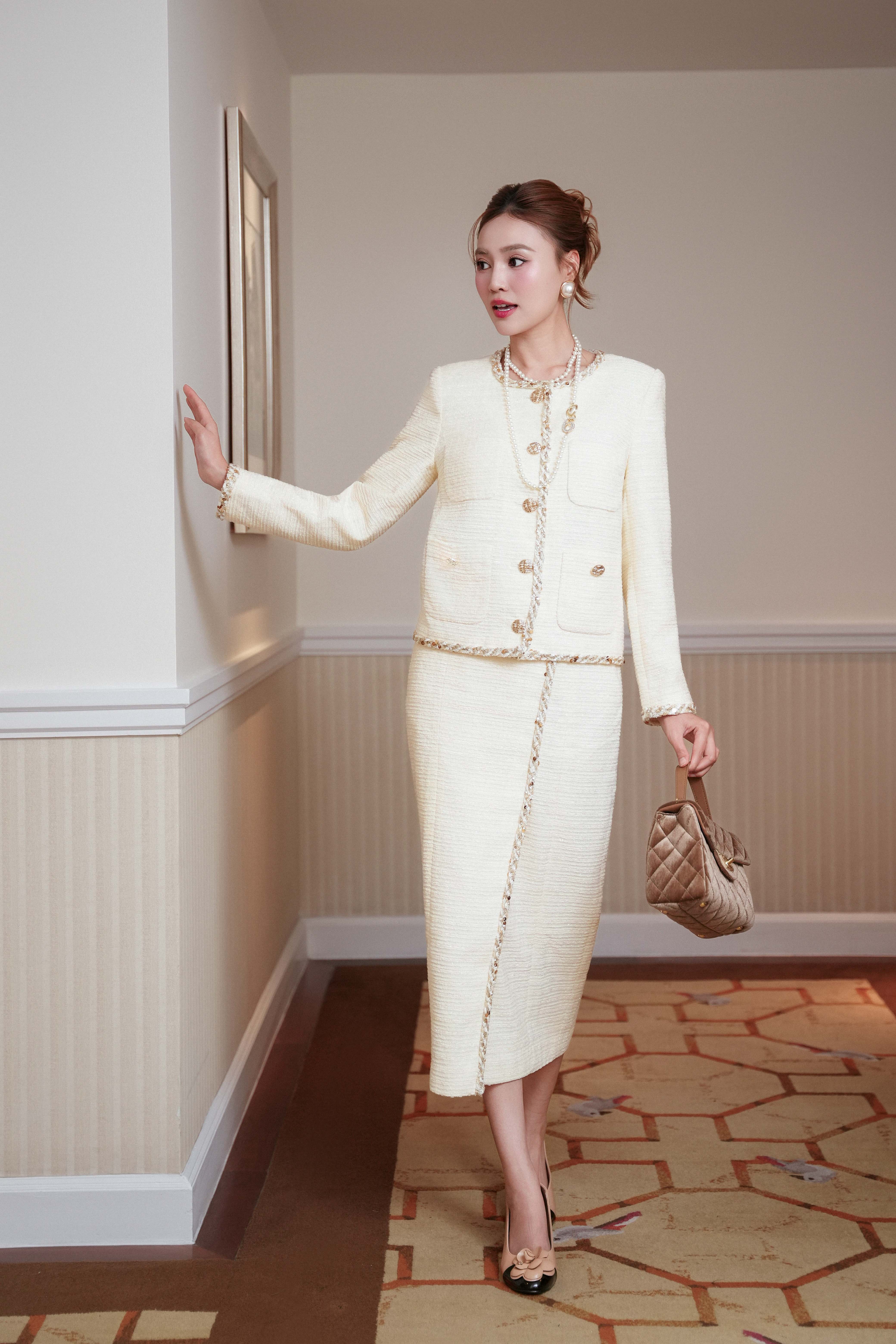 Cream Tweed Pencil Skirt