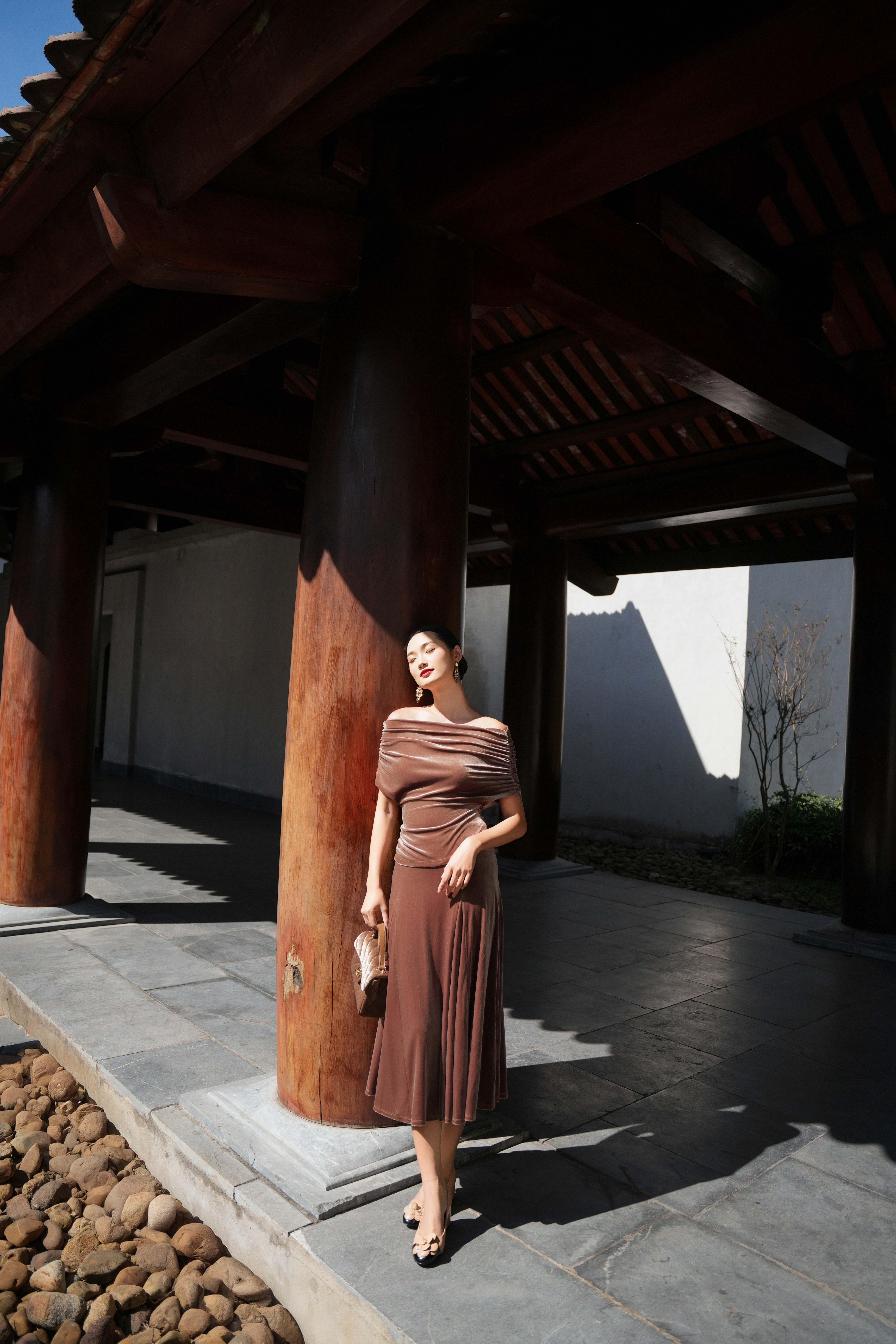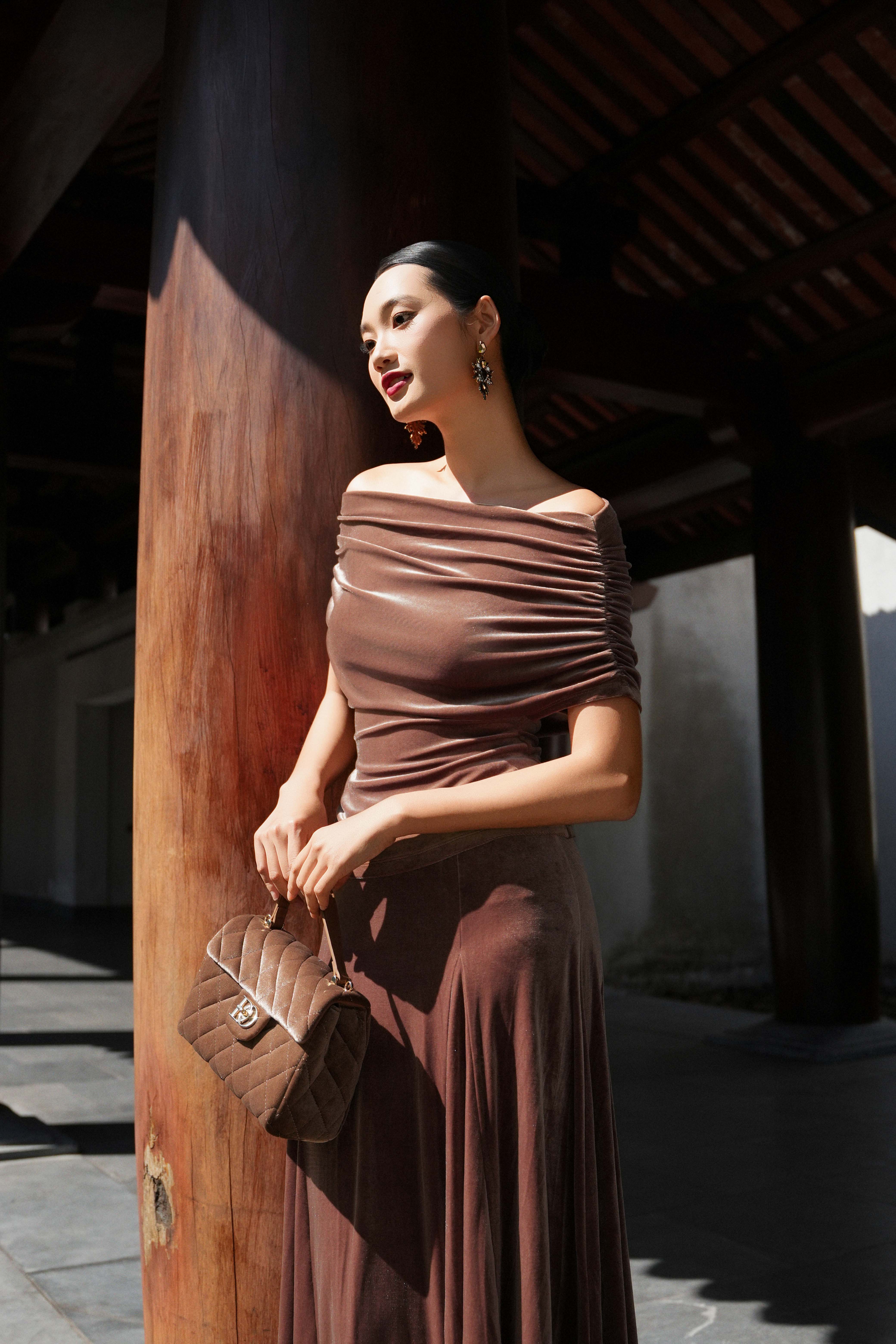 Dark Cinnamon Velvet Blouse With Belt