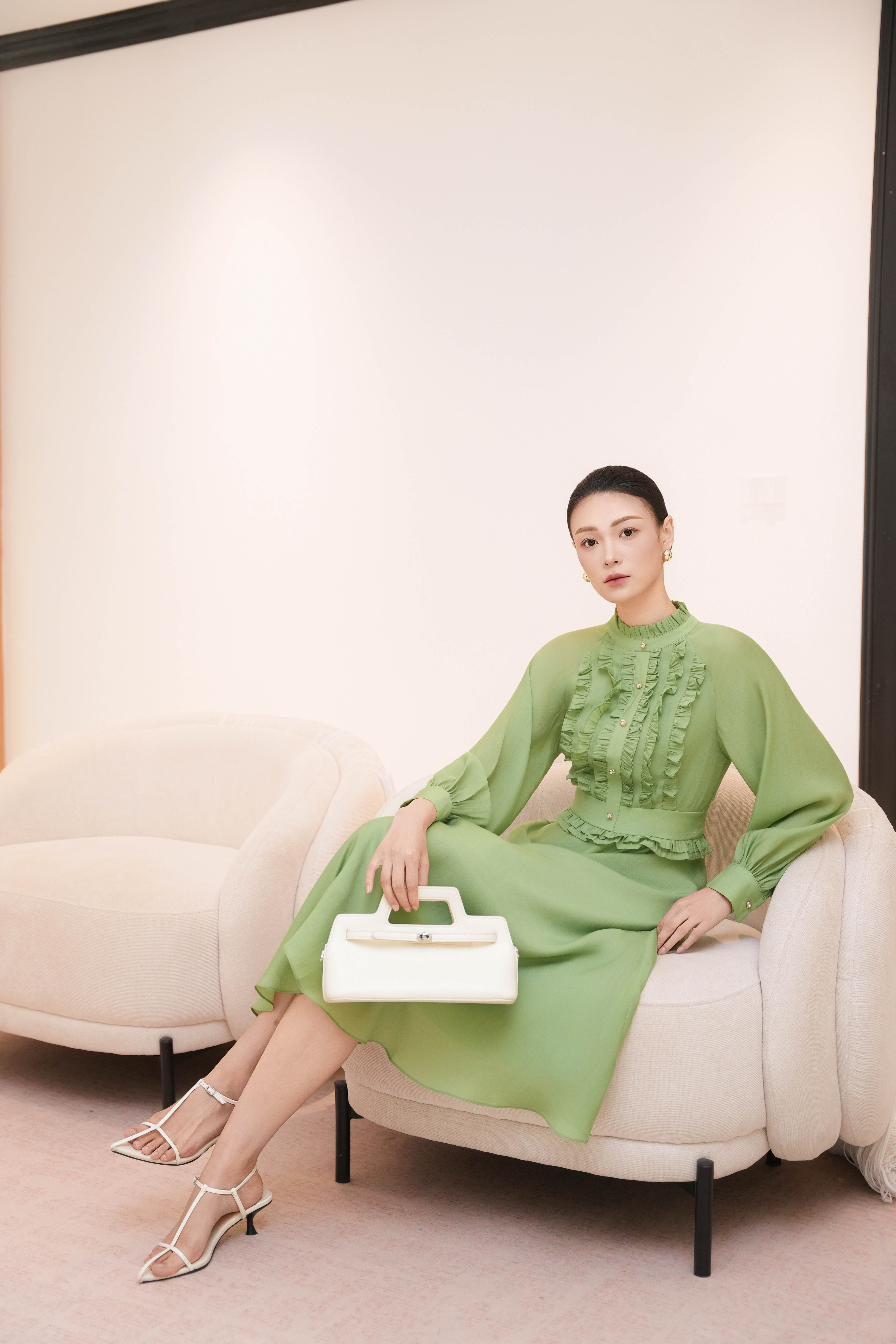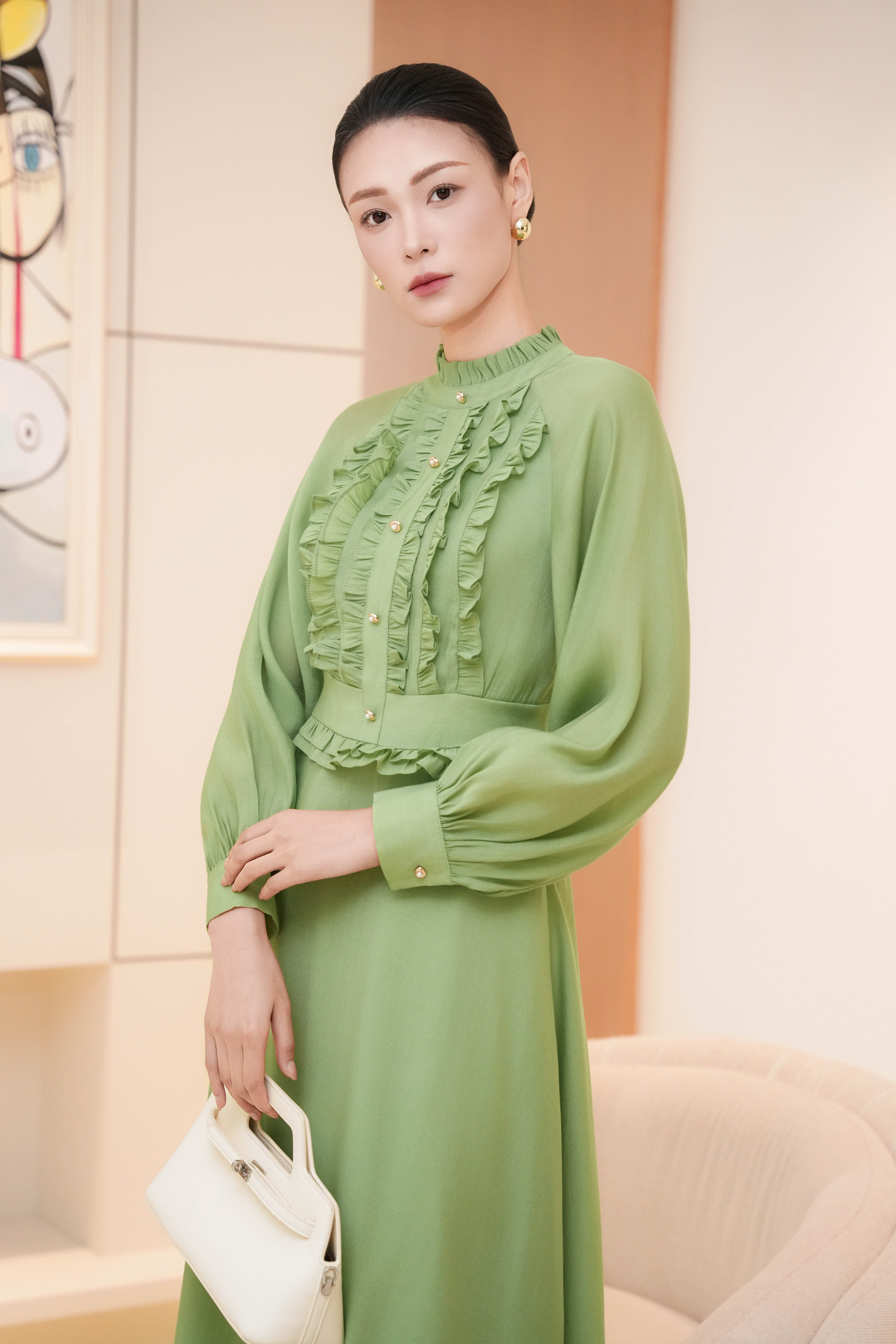 Green Organza Flared Dress