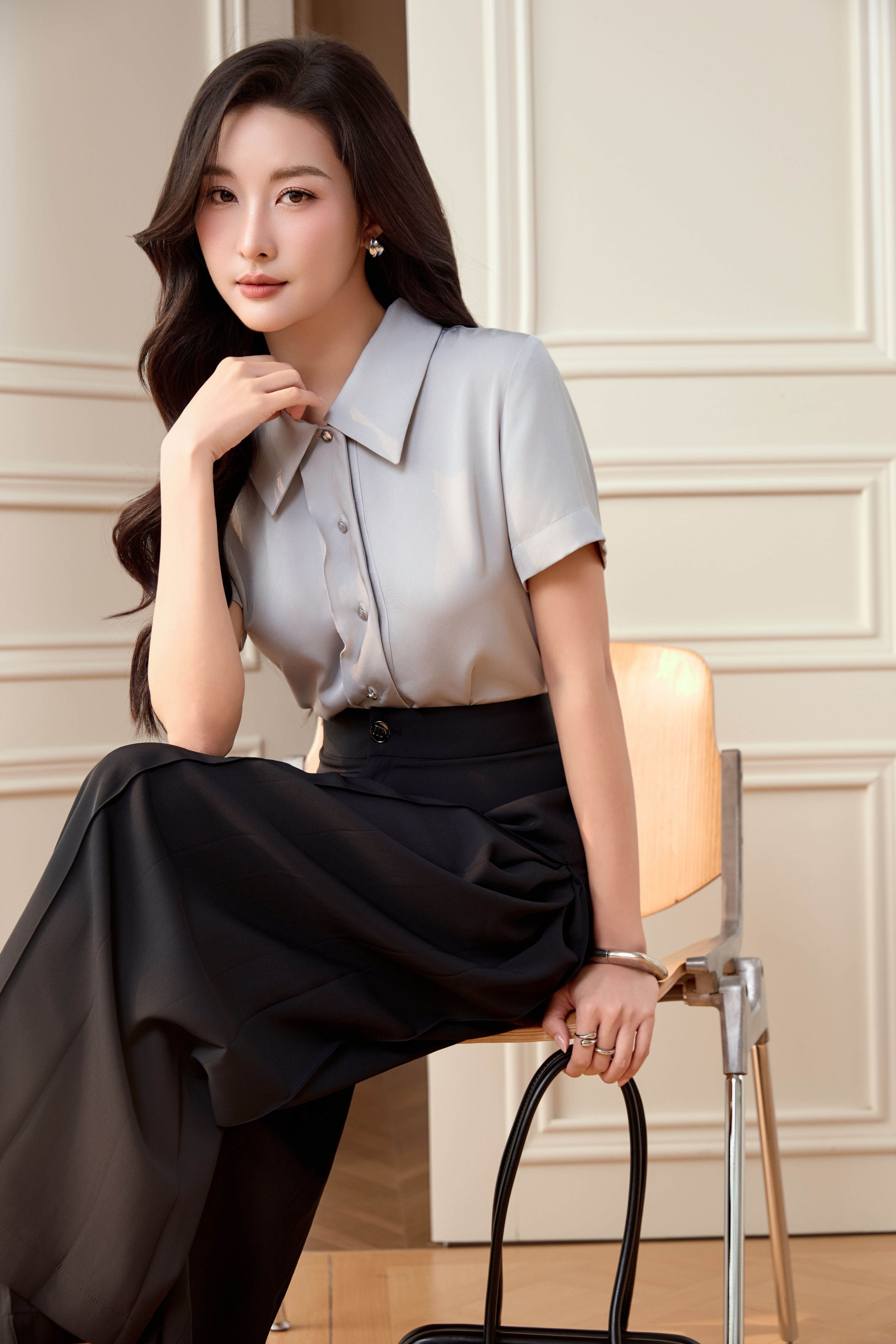 Light Blue-Grey Silk Shirt