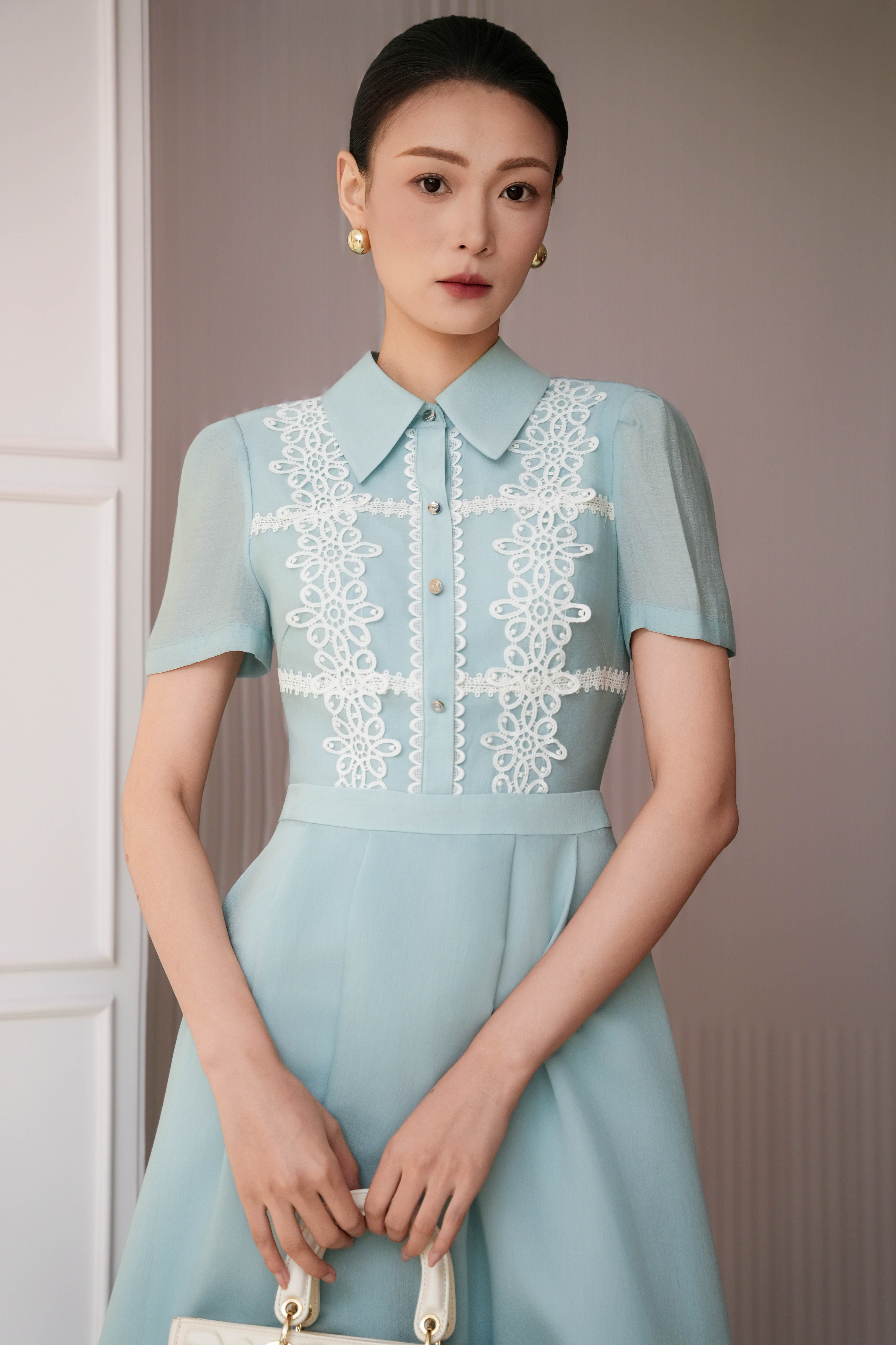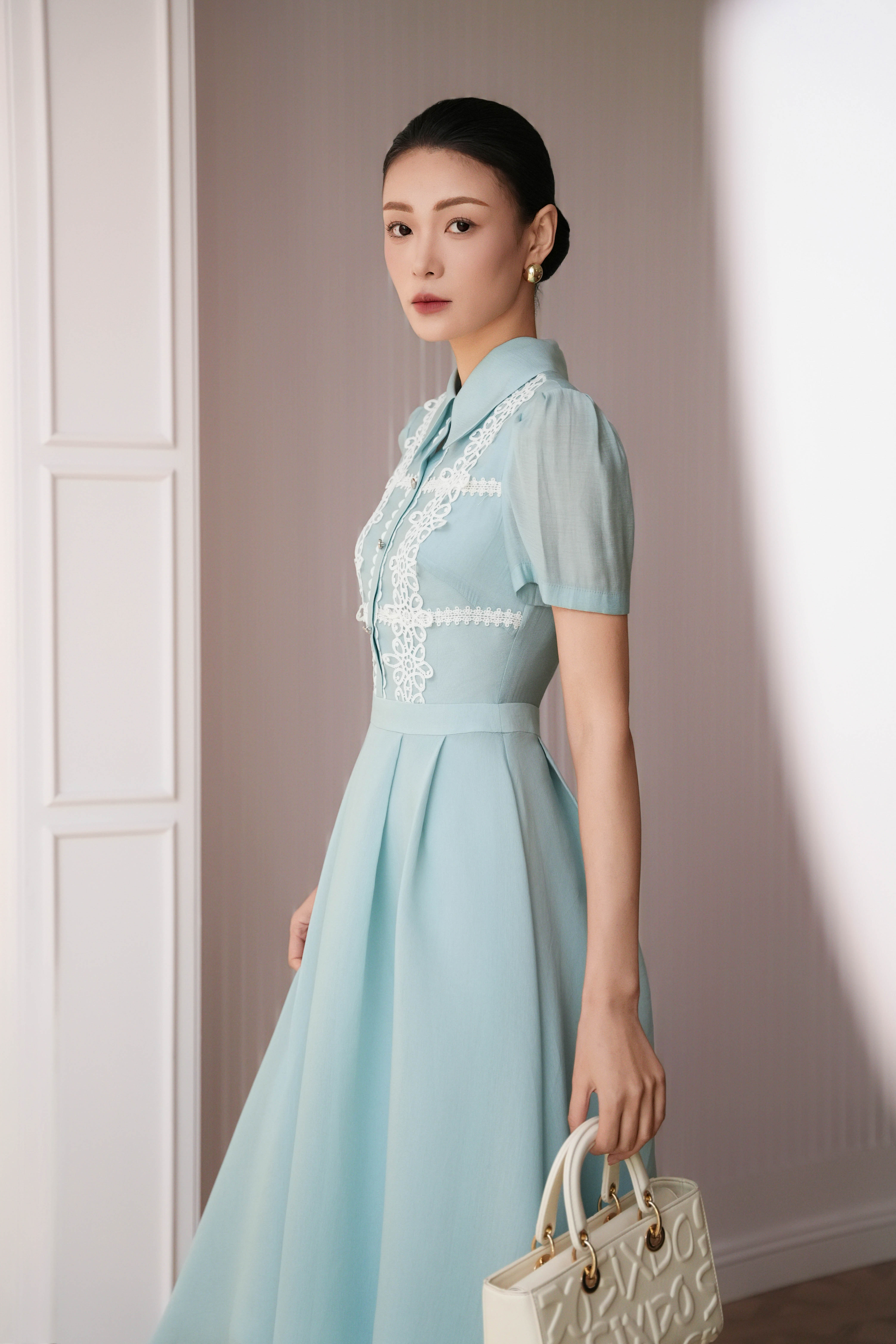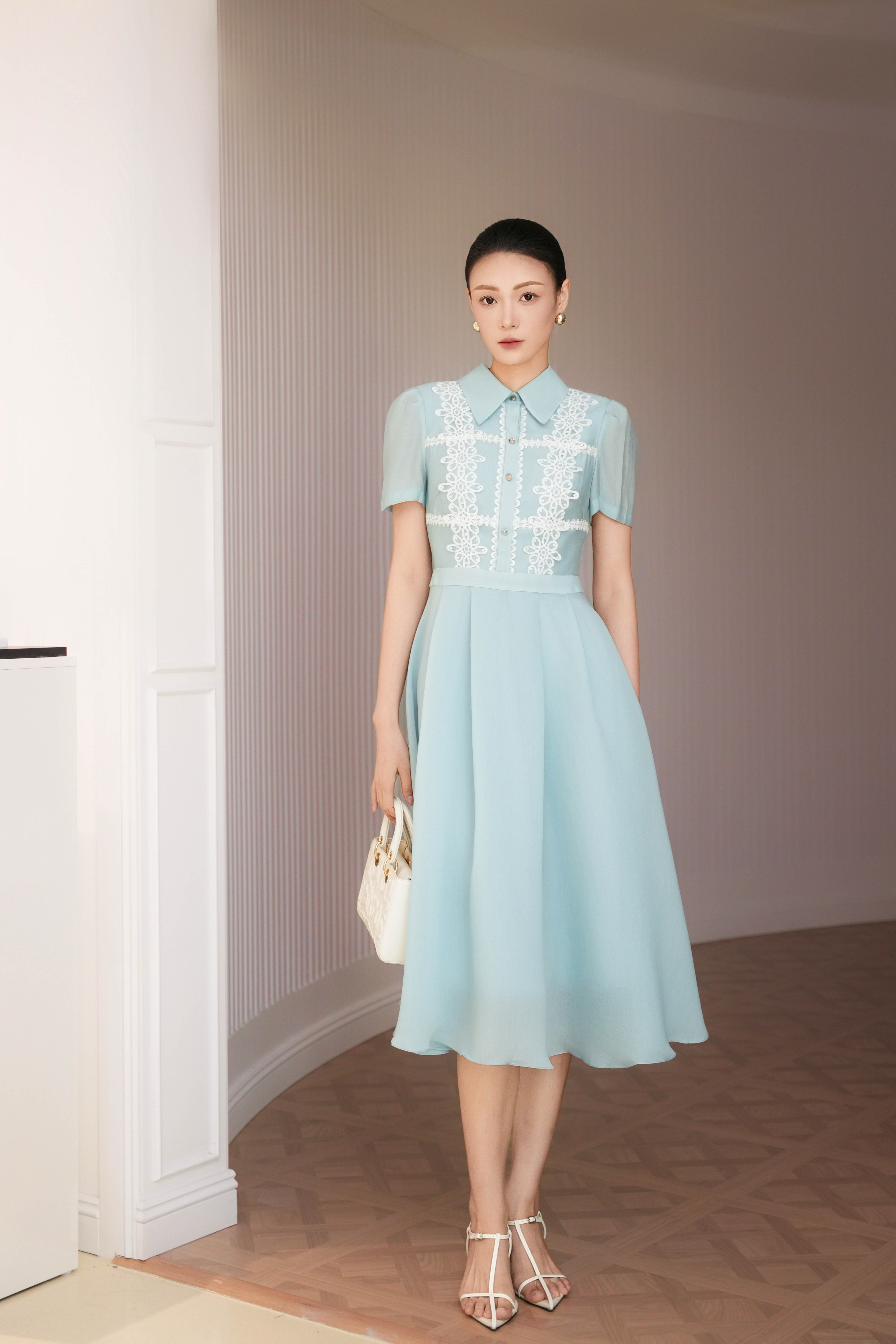 Light Blue Organza Flared Dress