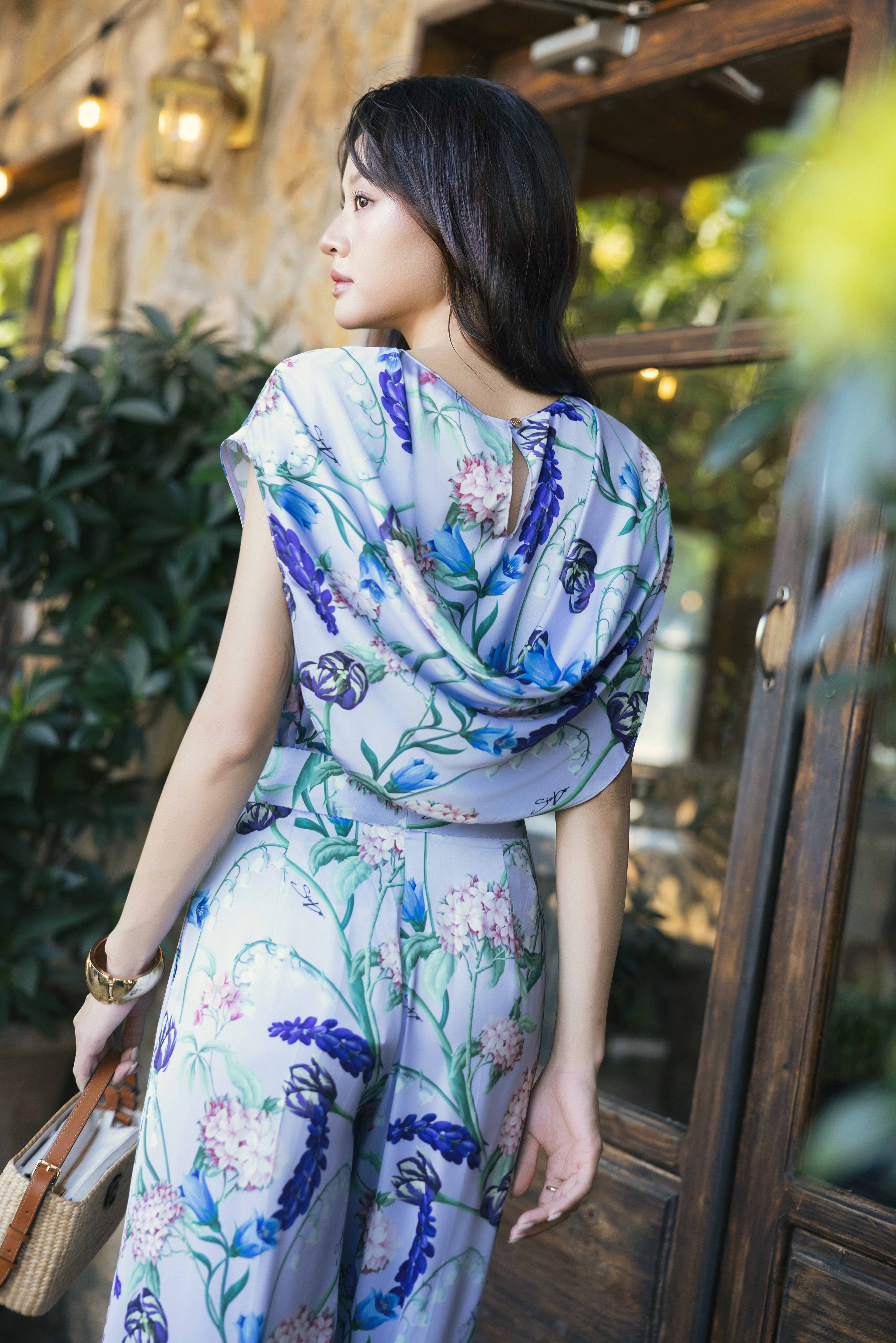 Light Purple Floral Silk Loose Pants