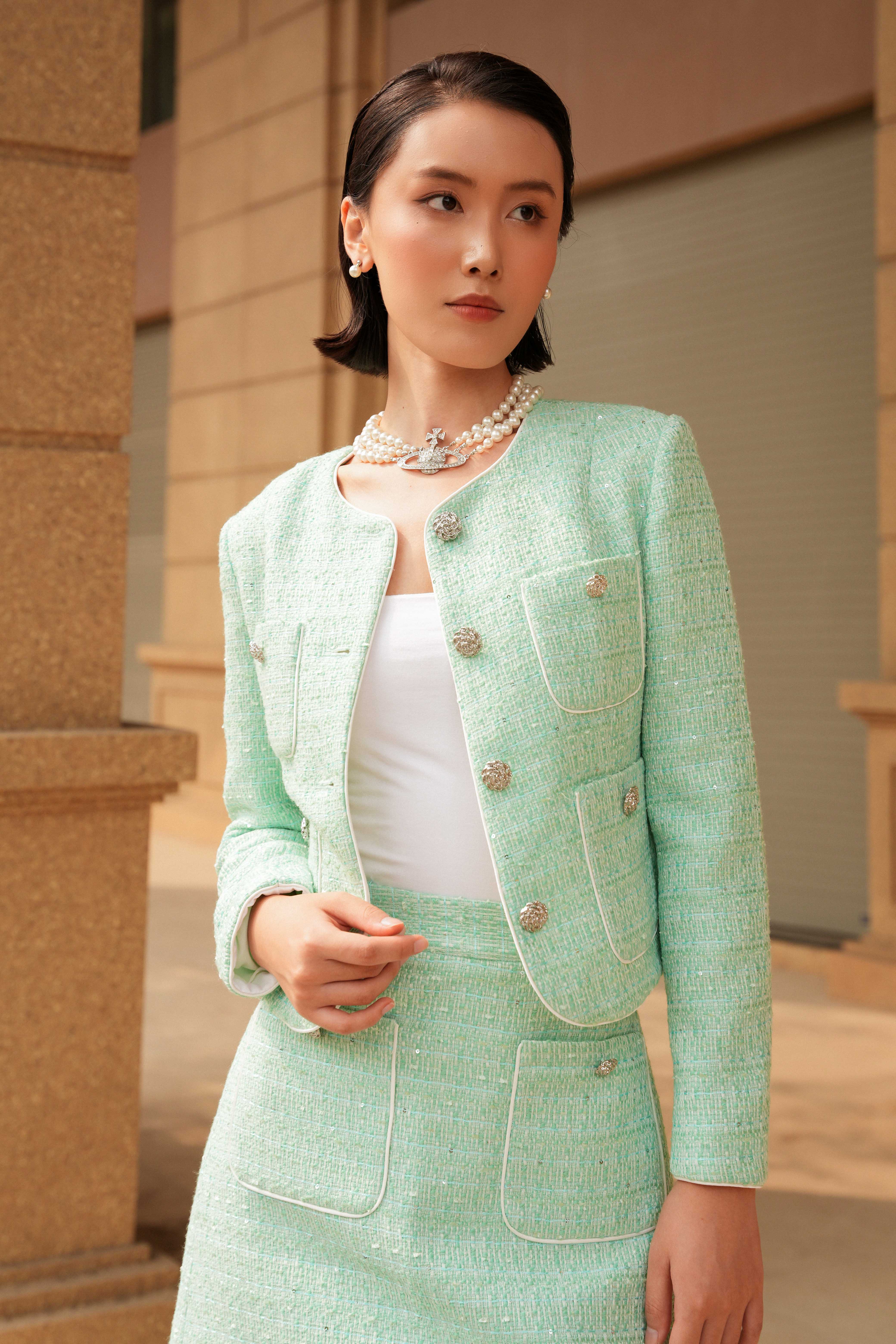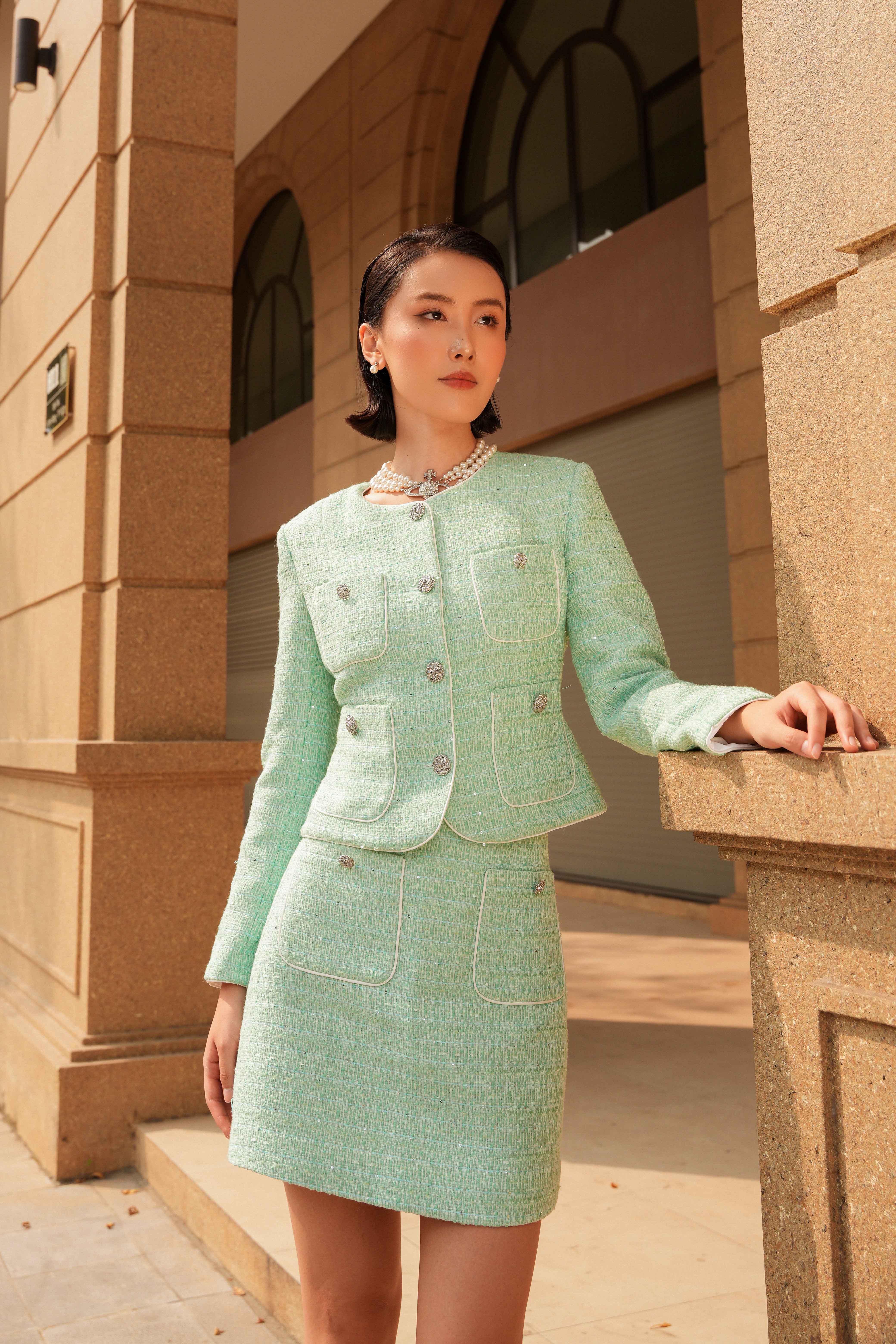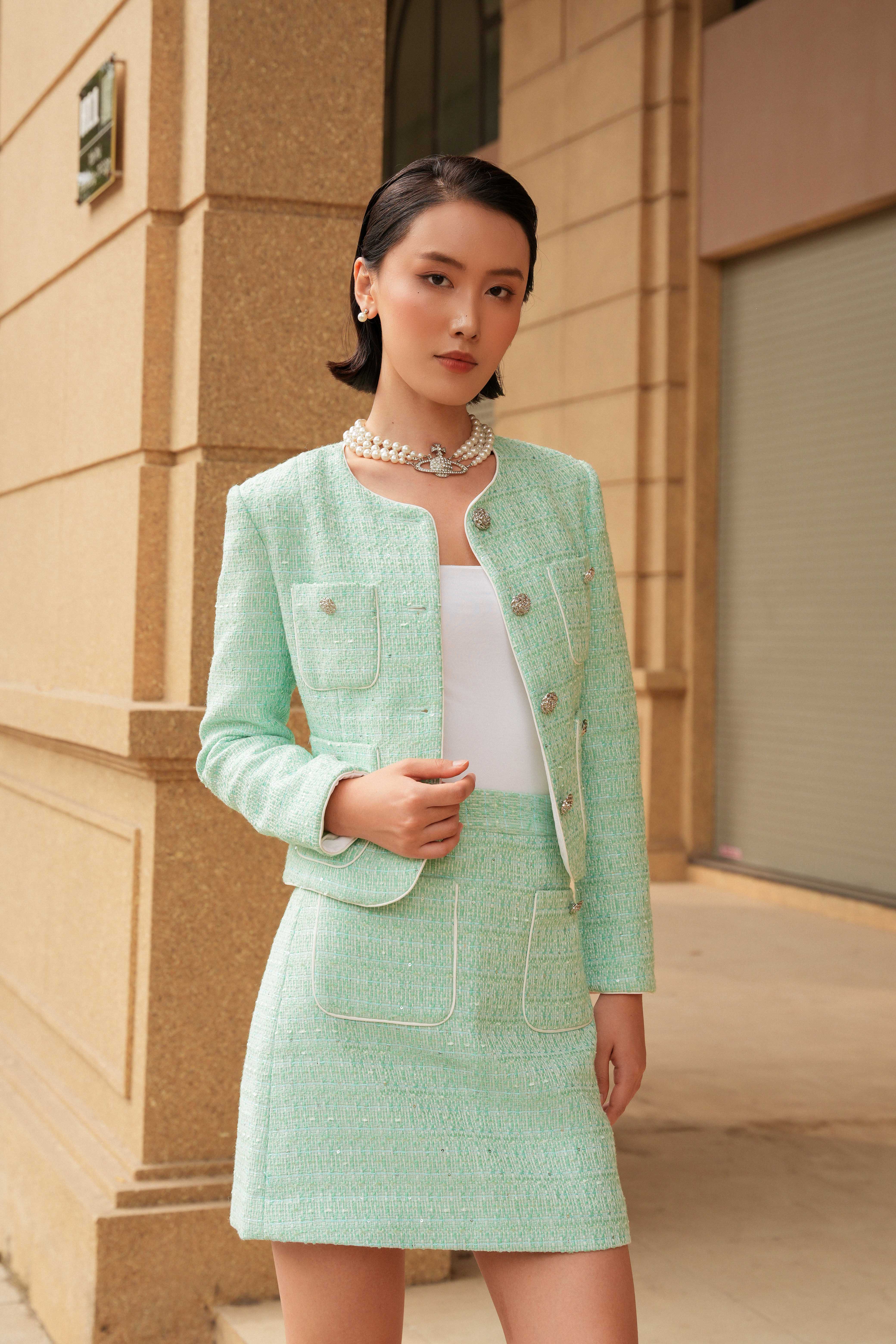 Light Turquoise Tweed Mini Skirt