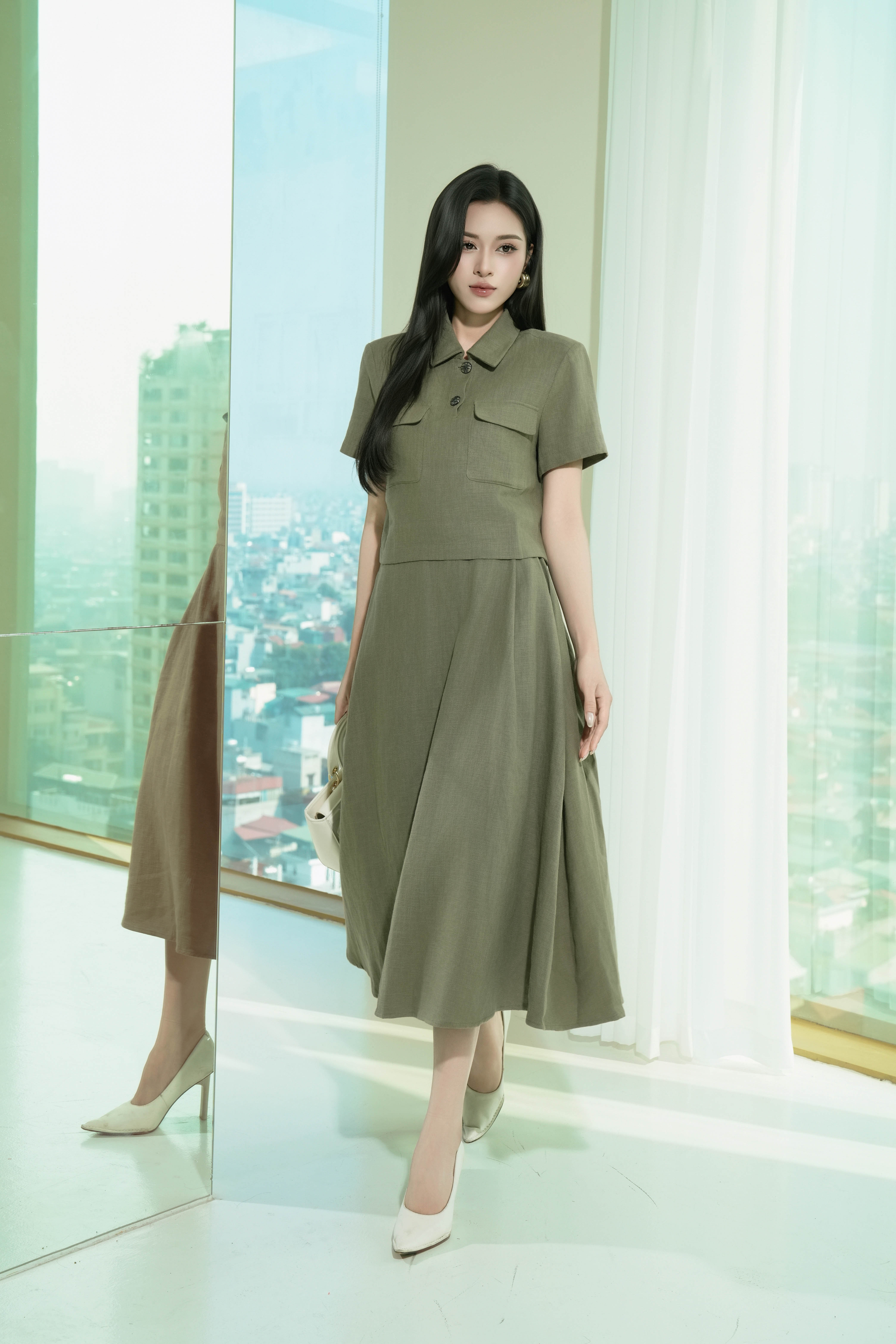 • Để giữ cho sản phẩm trông mới mẻ và không bị nhăn, bạn có thể ủi sản phẩm ở nhiệt độ vừa phải. Tránh sử dụng nhiệt độ quá cao để tránh làm hỏng vải."