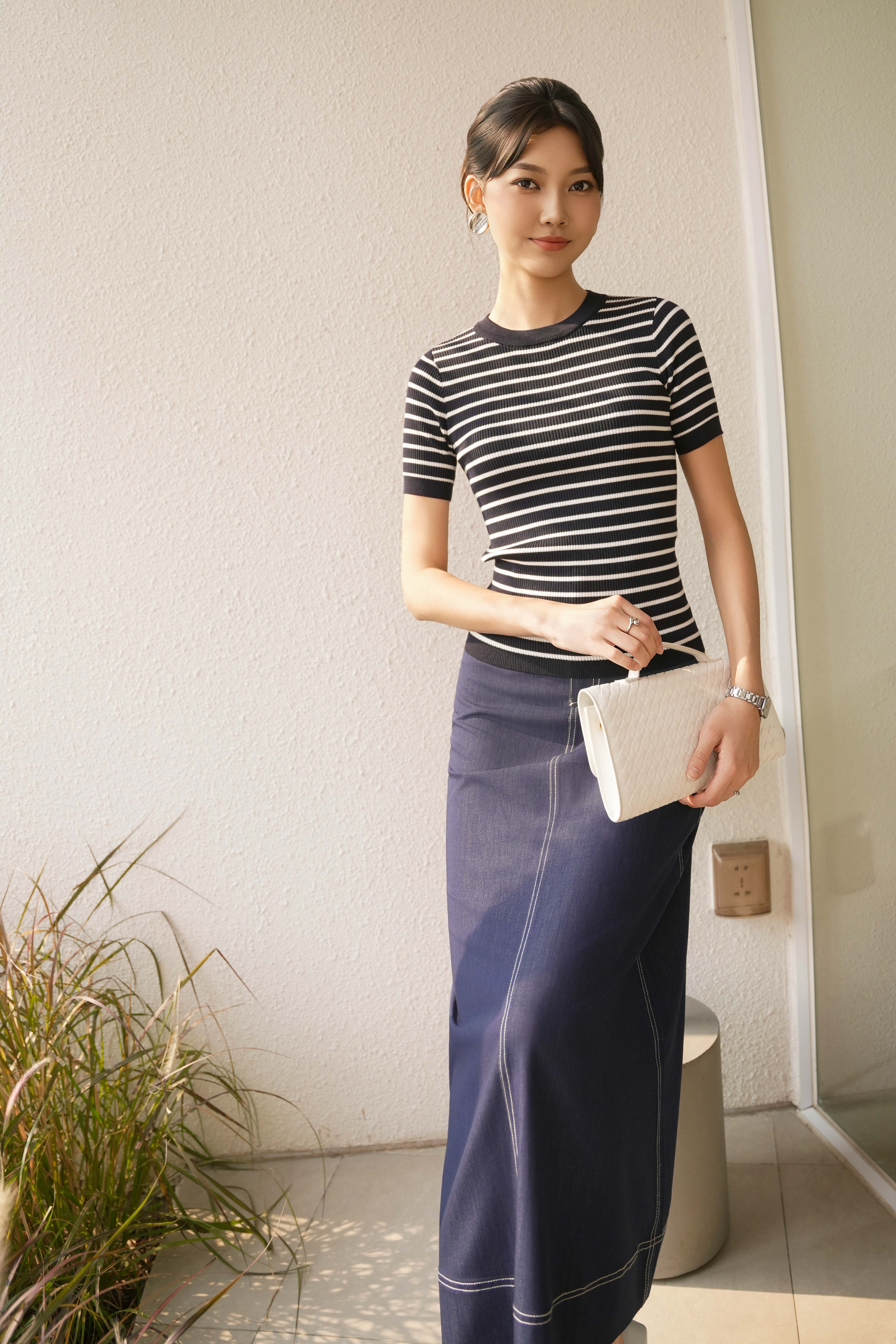Navy Stripe Knit Blouse