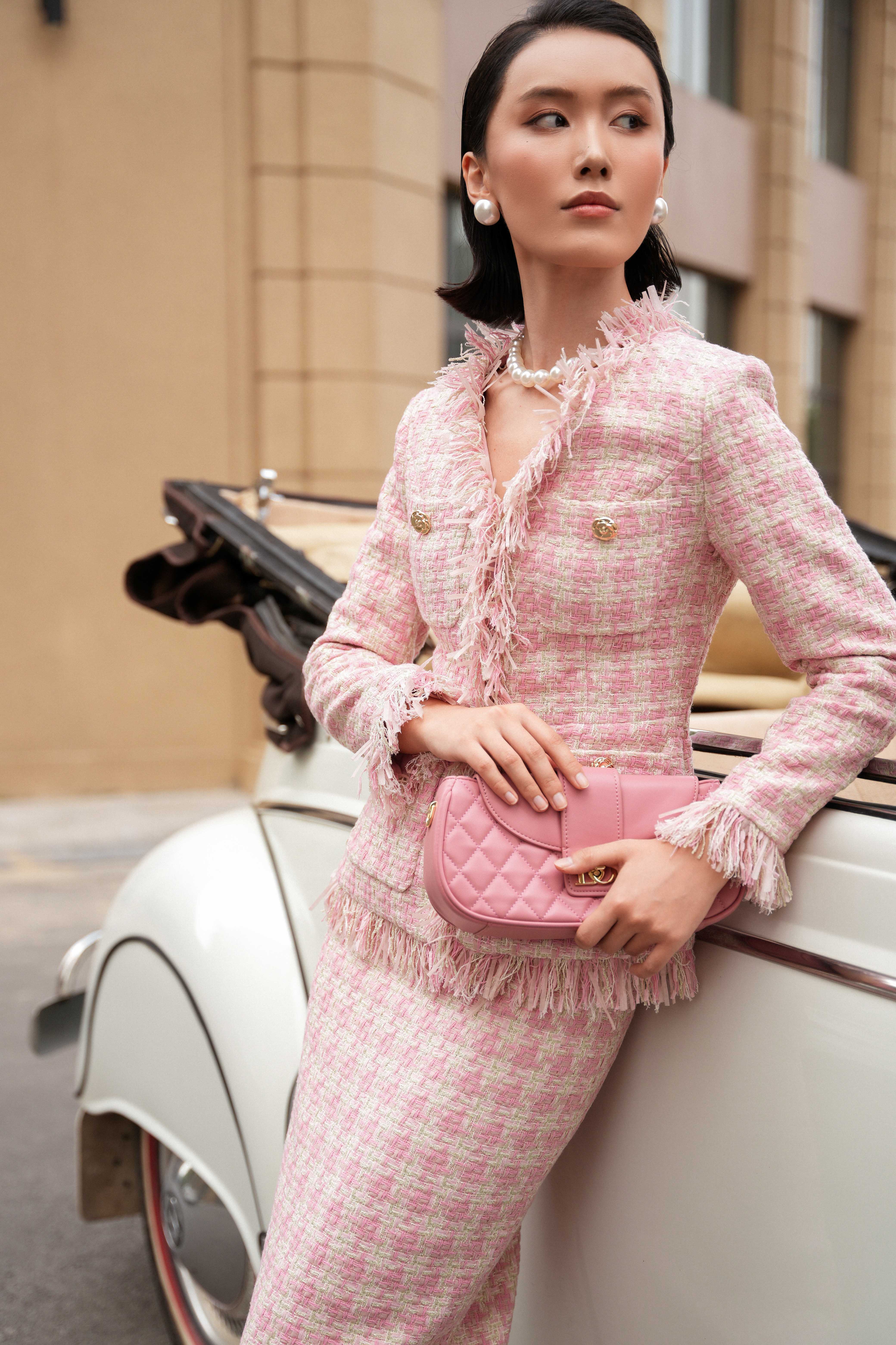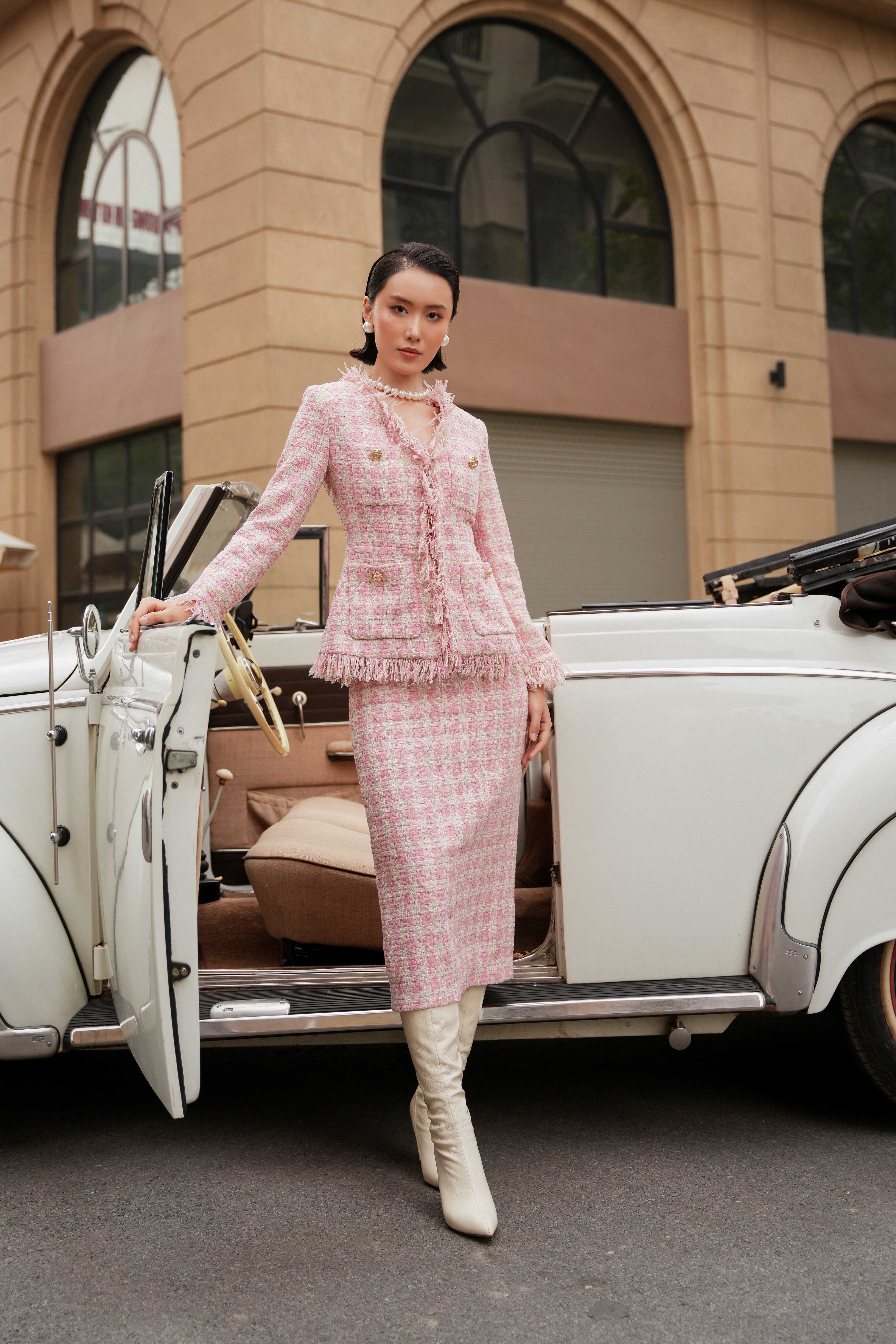 Pink Tweed Pencil Skirt