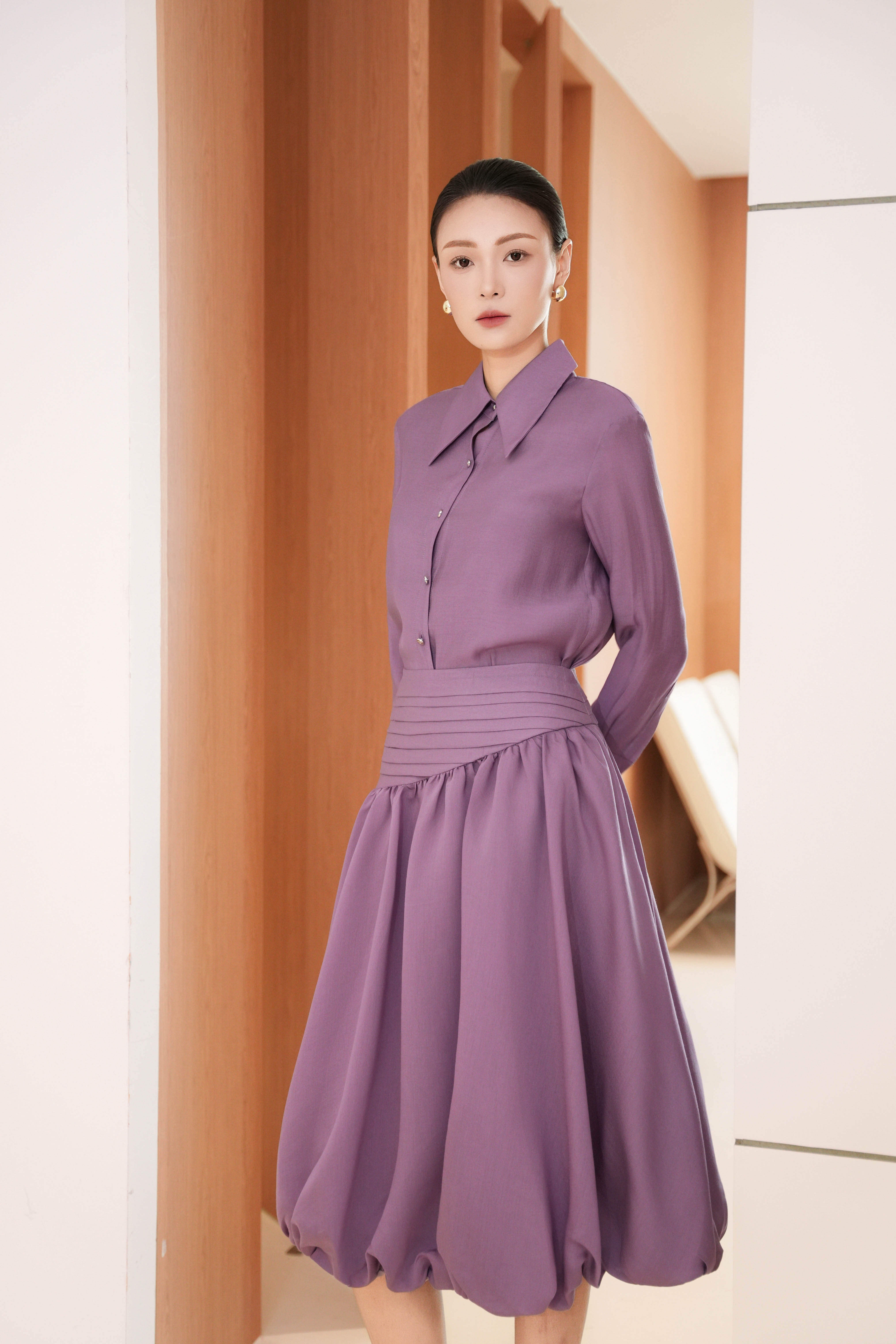 Purple Organza Flared Skirt