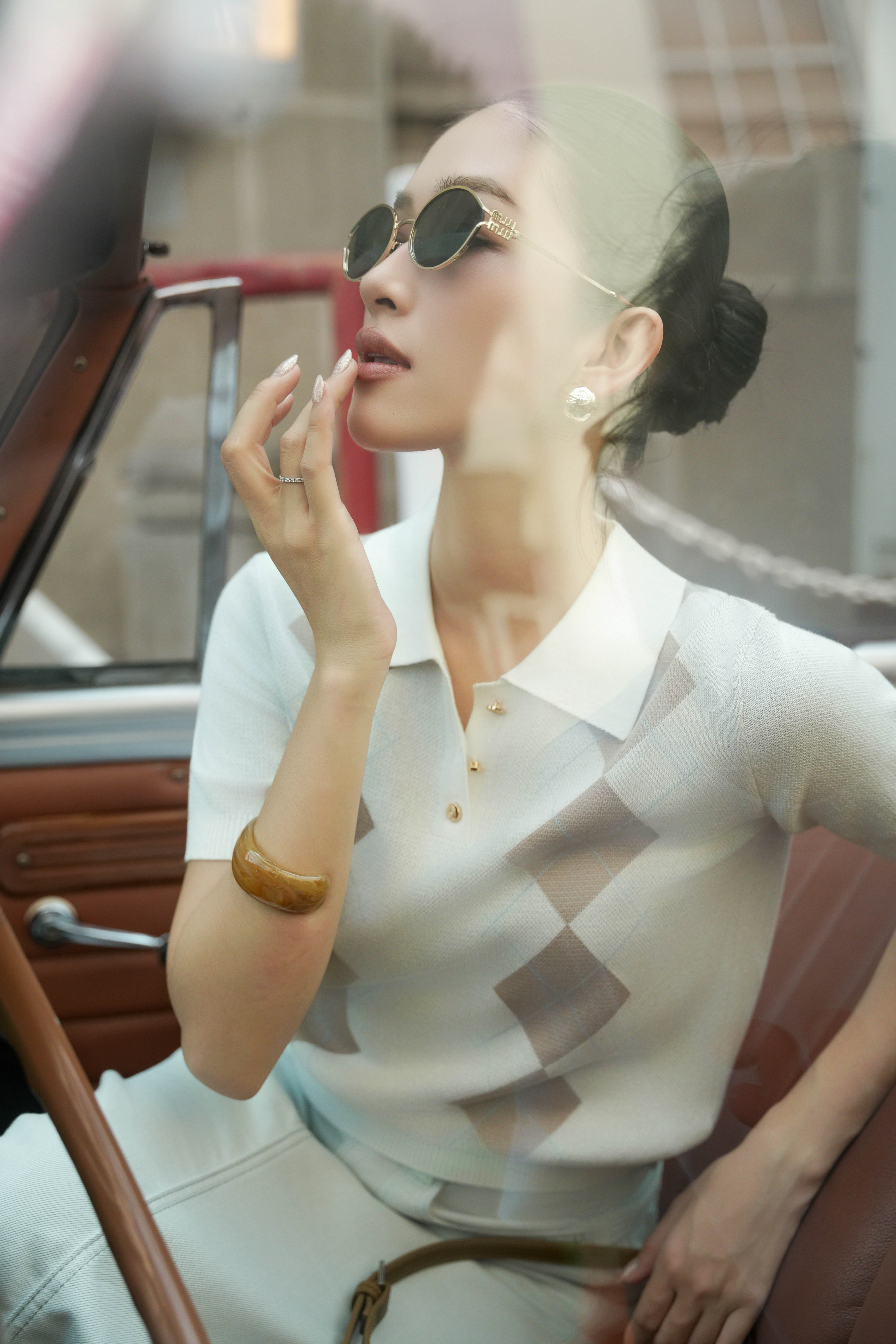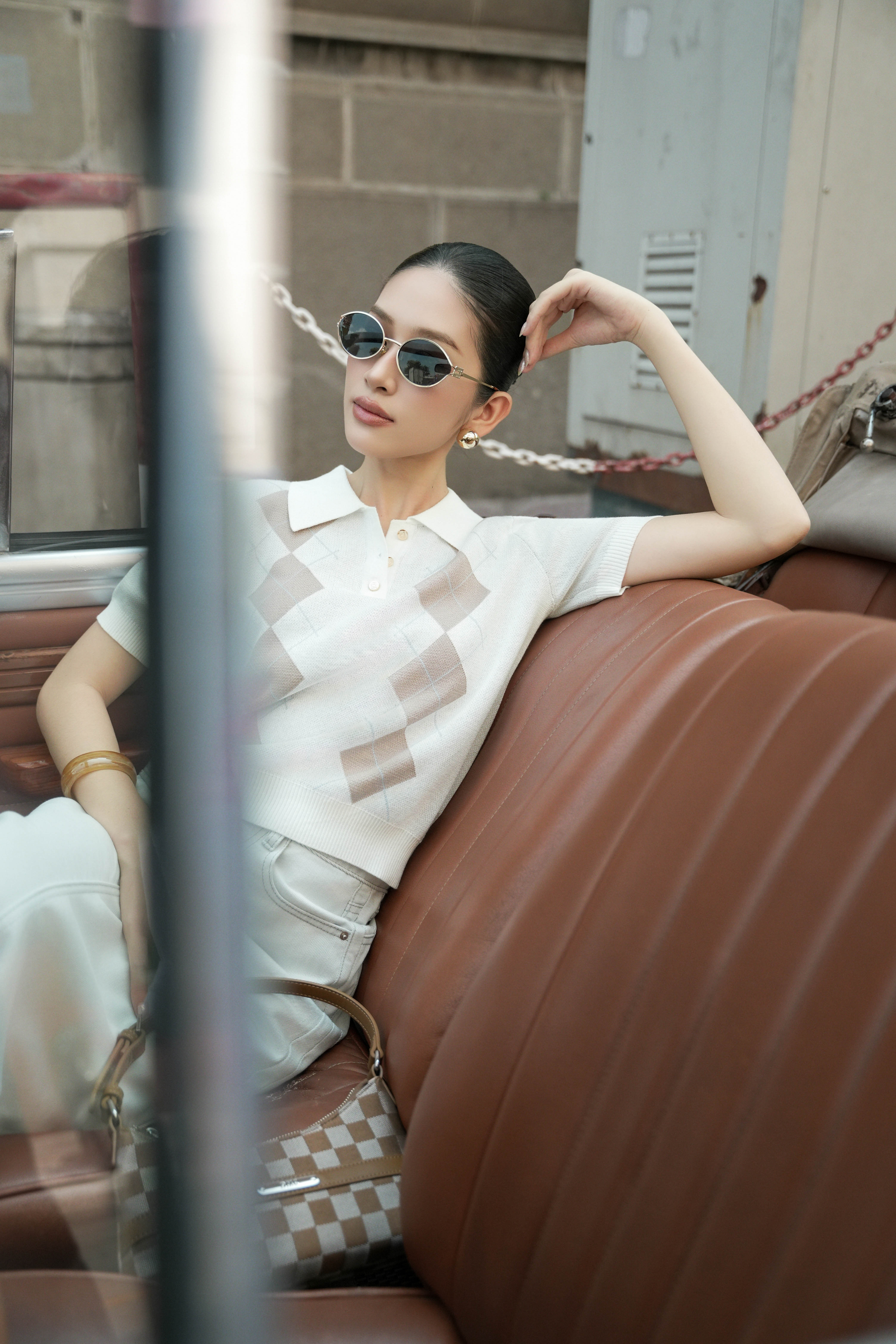 White Argyle Knit Polo