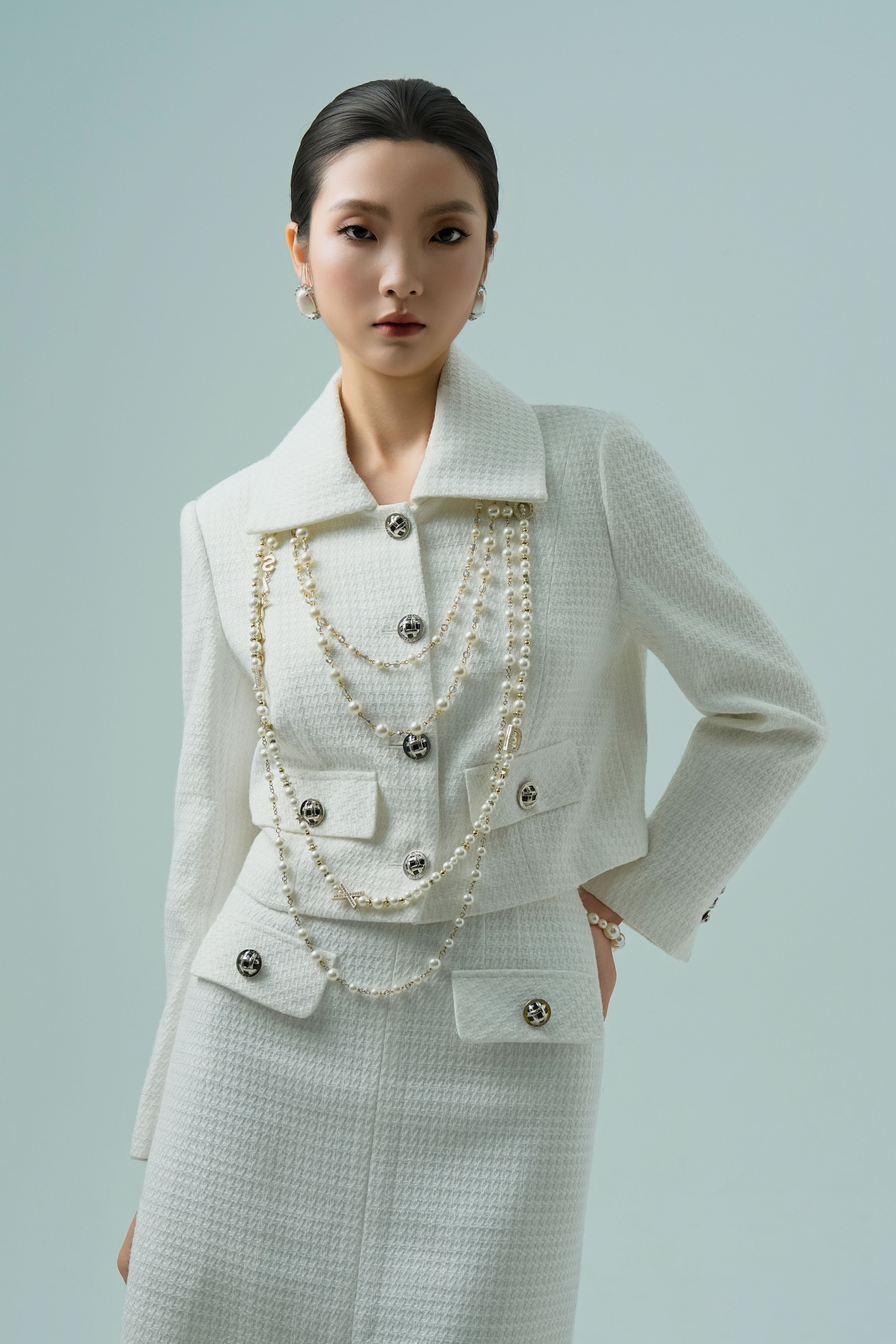 White Cropped Tweed Vest
