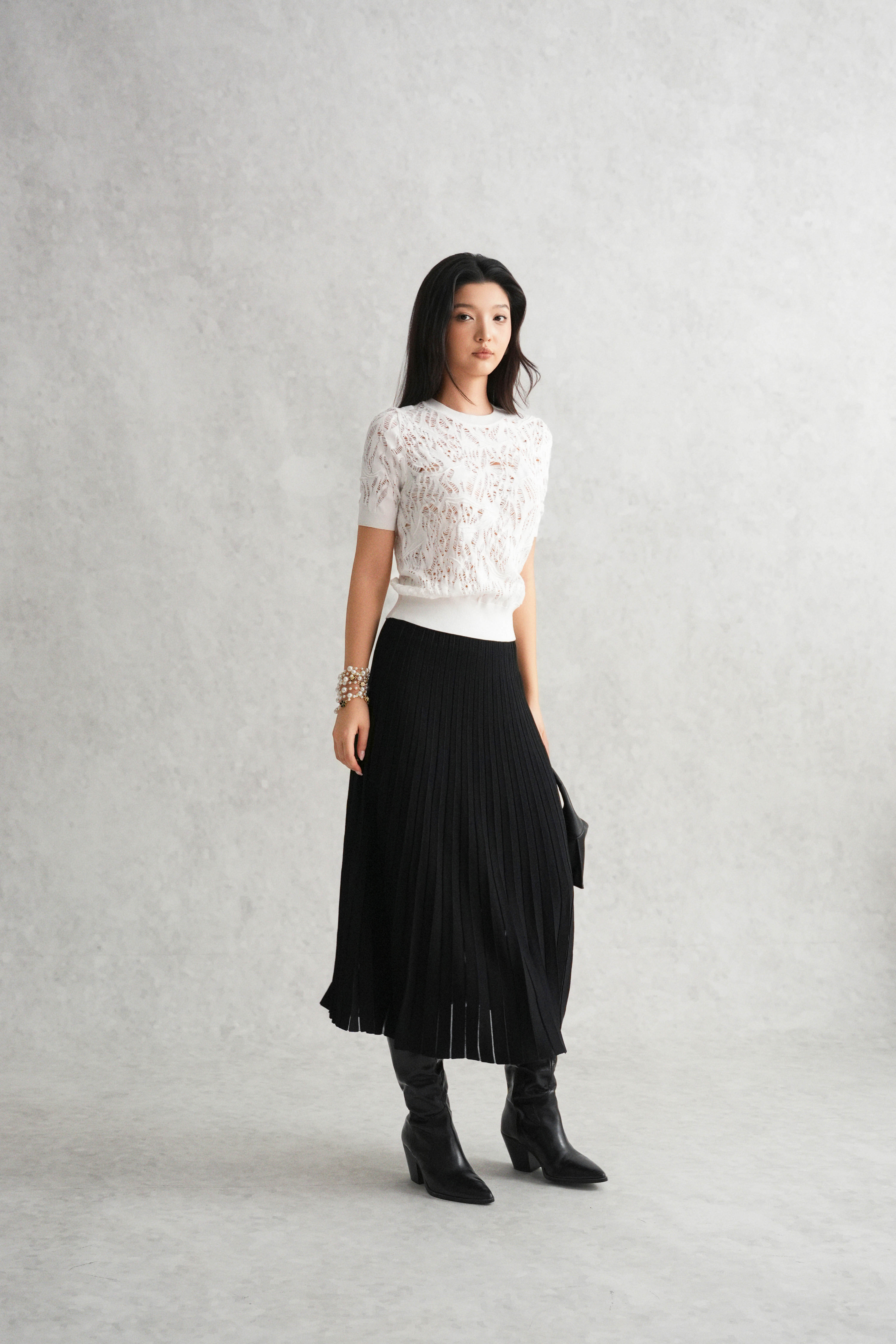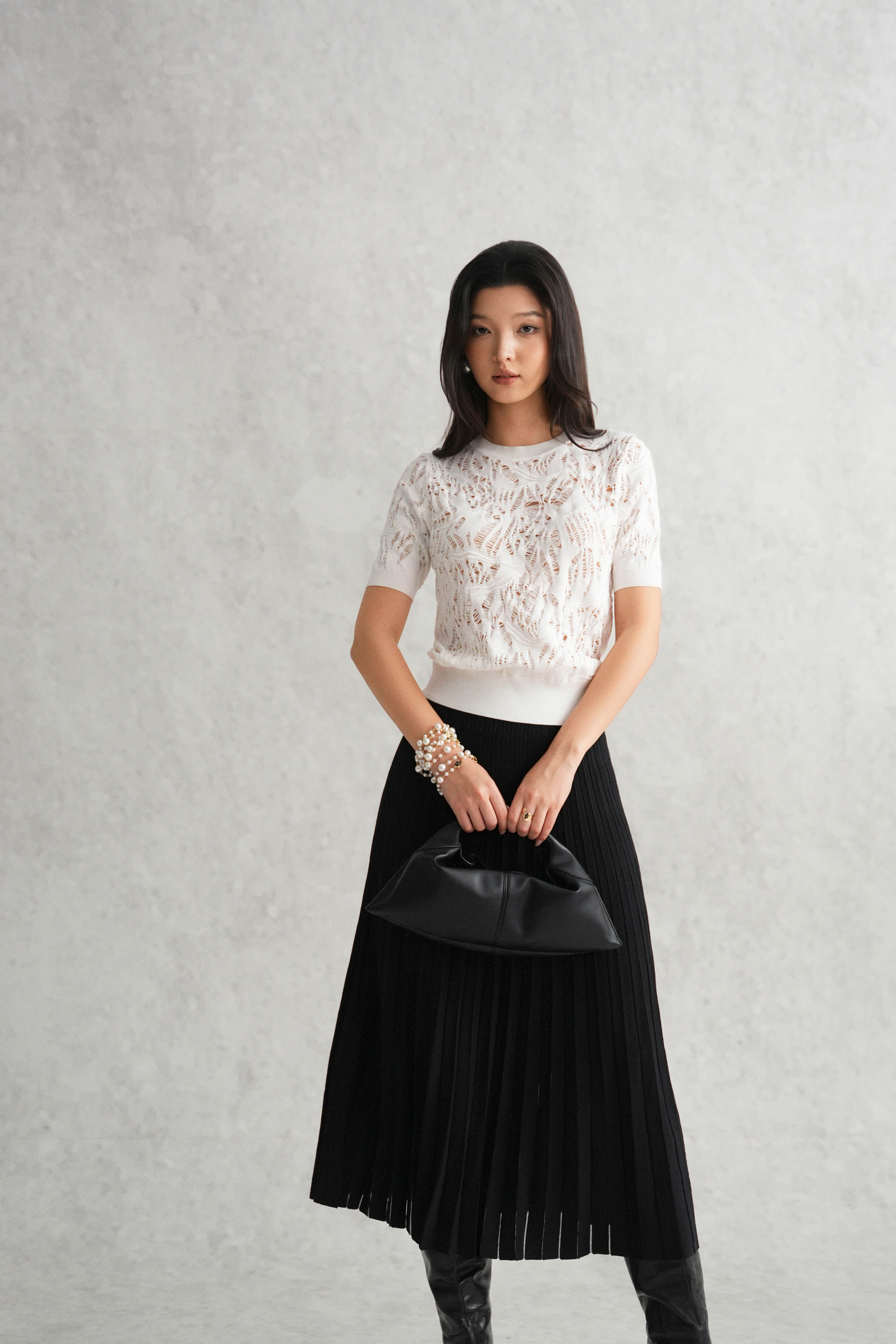 White Distressed Knit Blouse