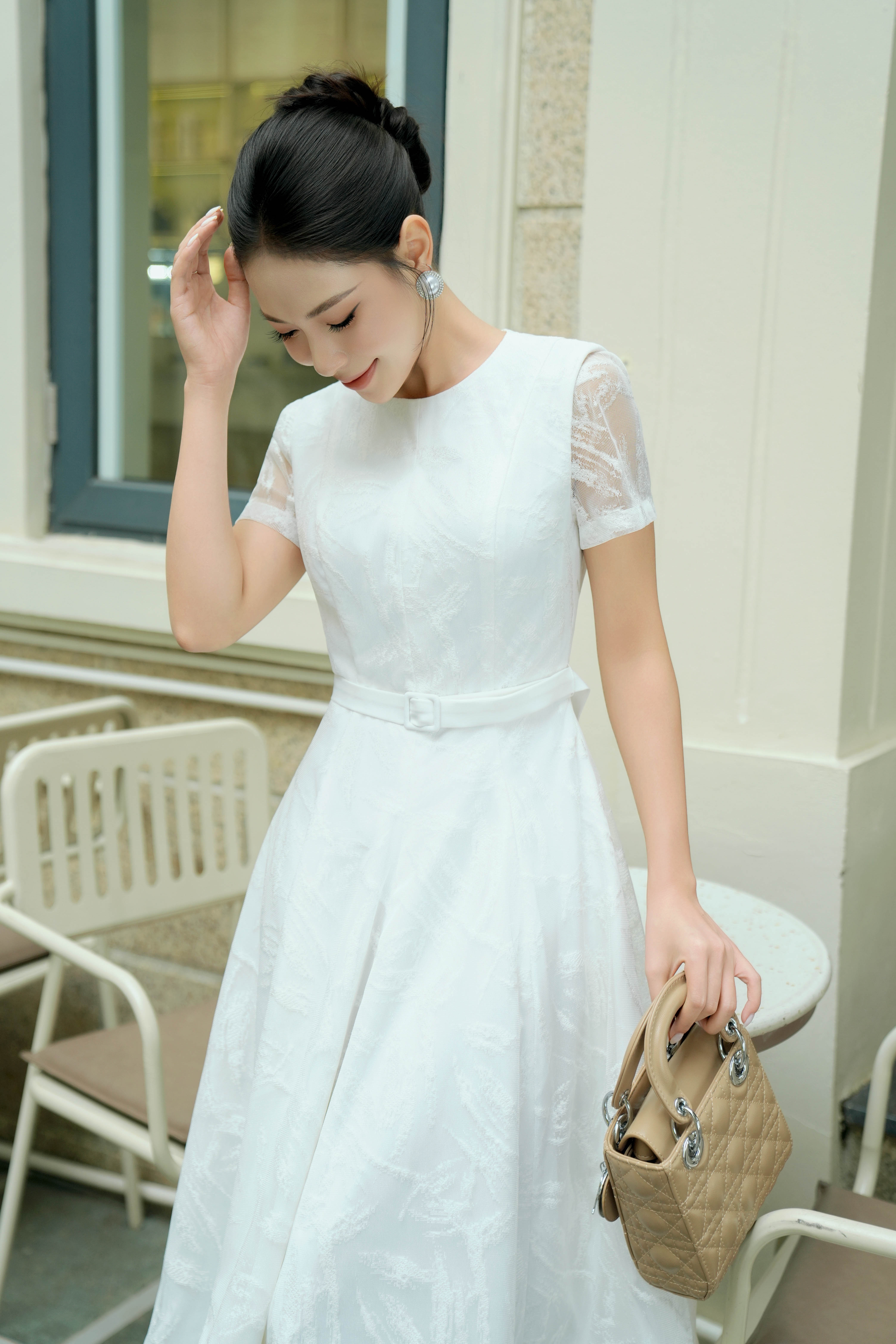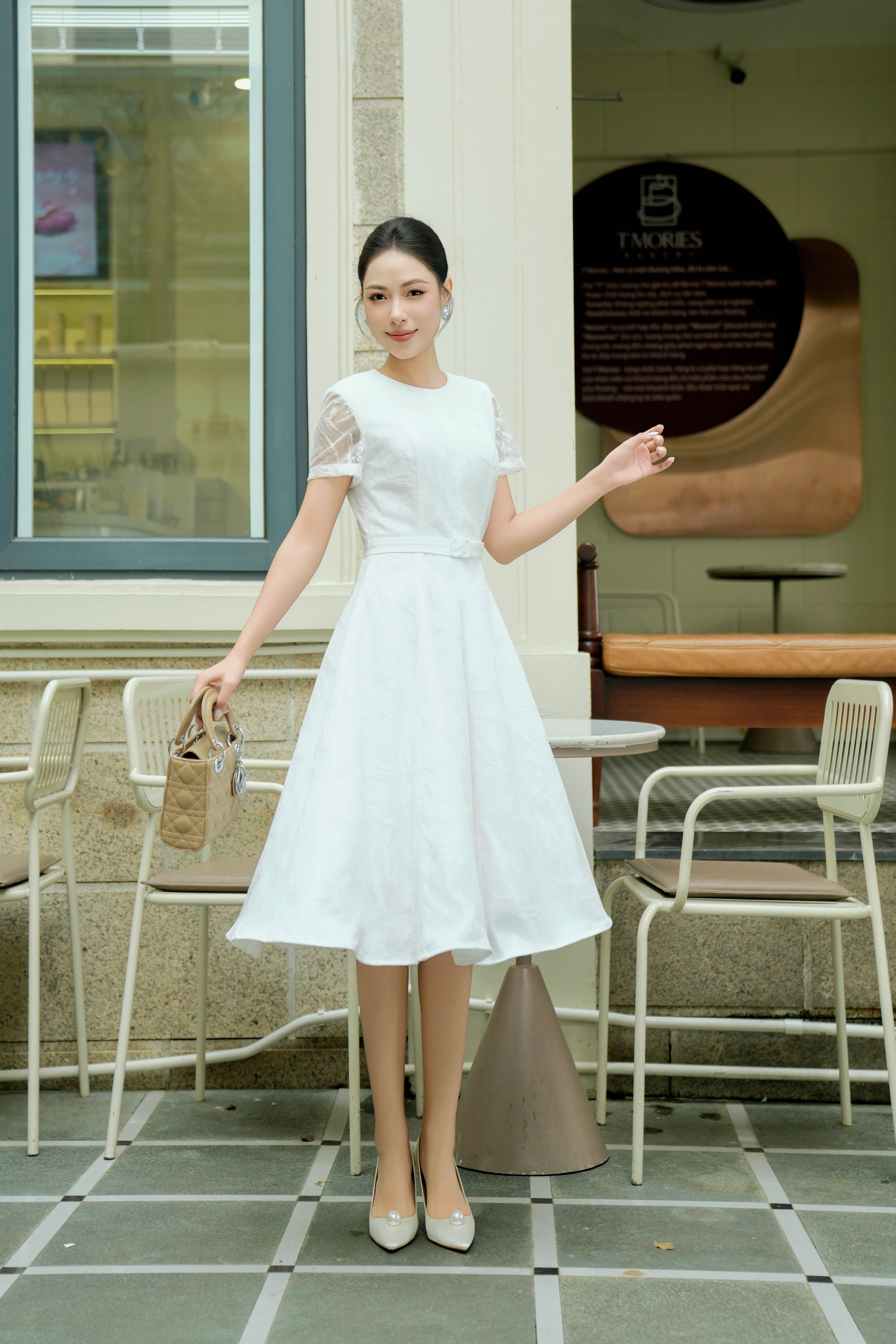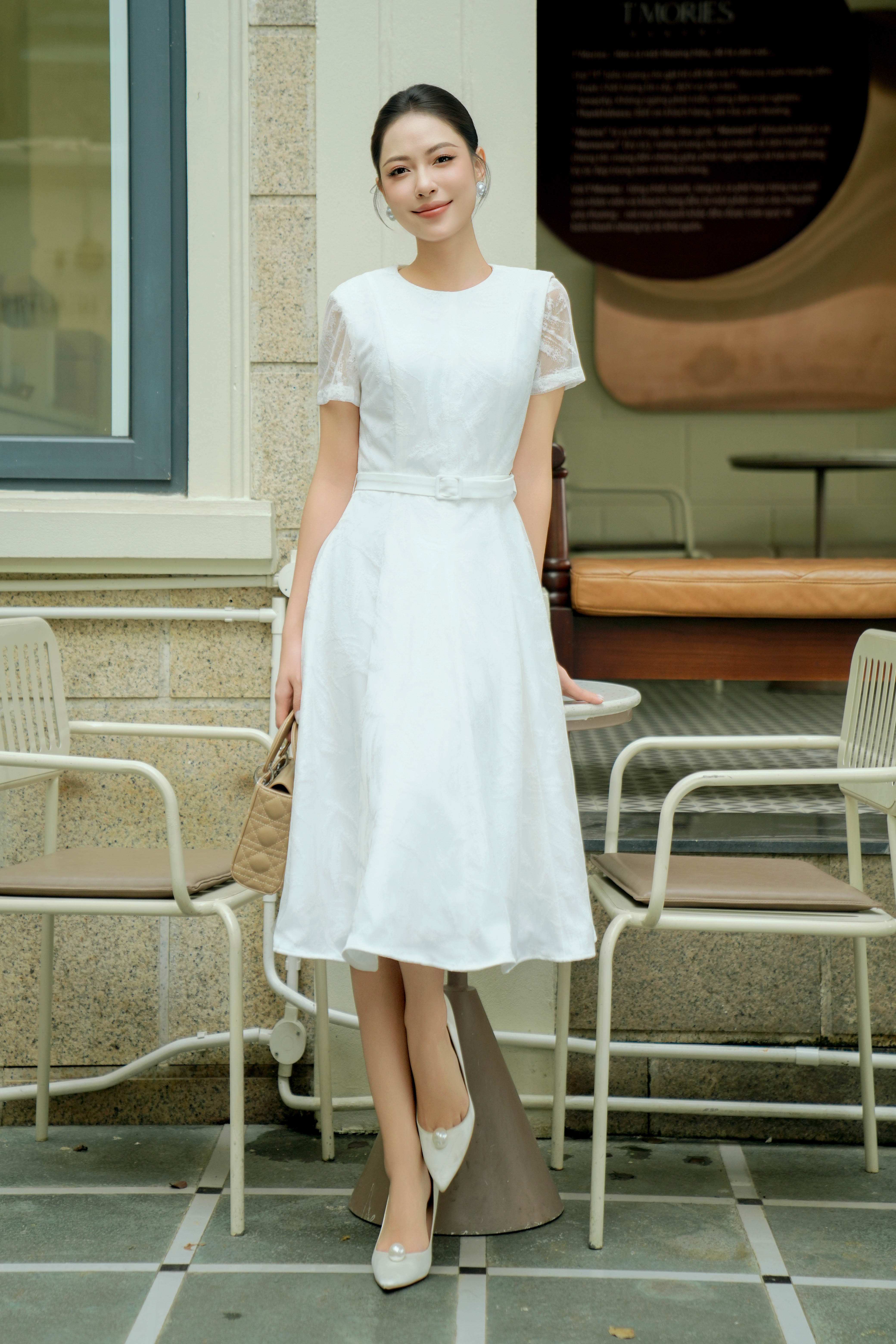 White Lace Flared Dress